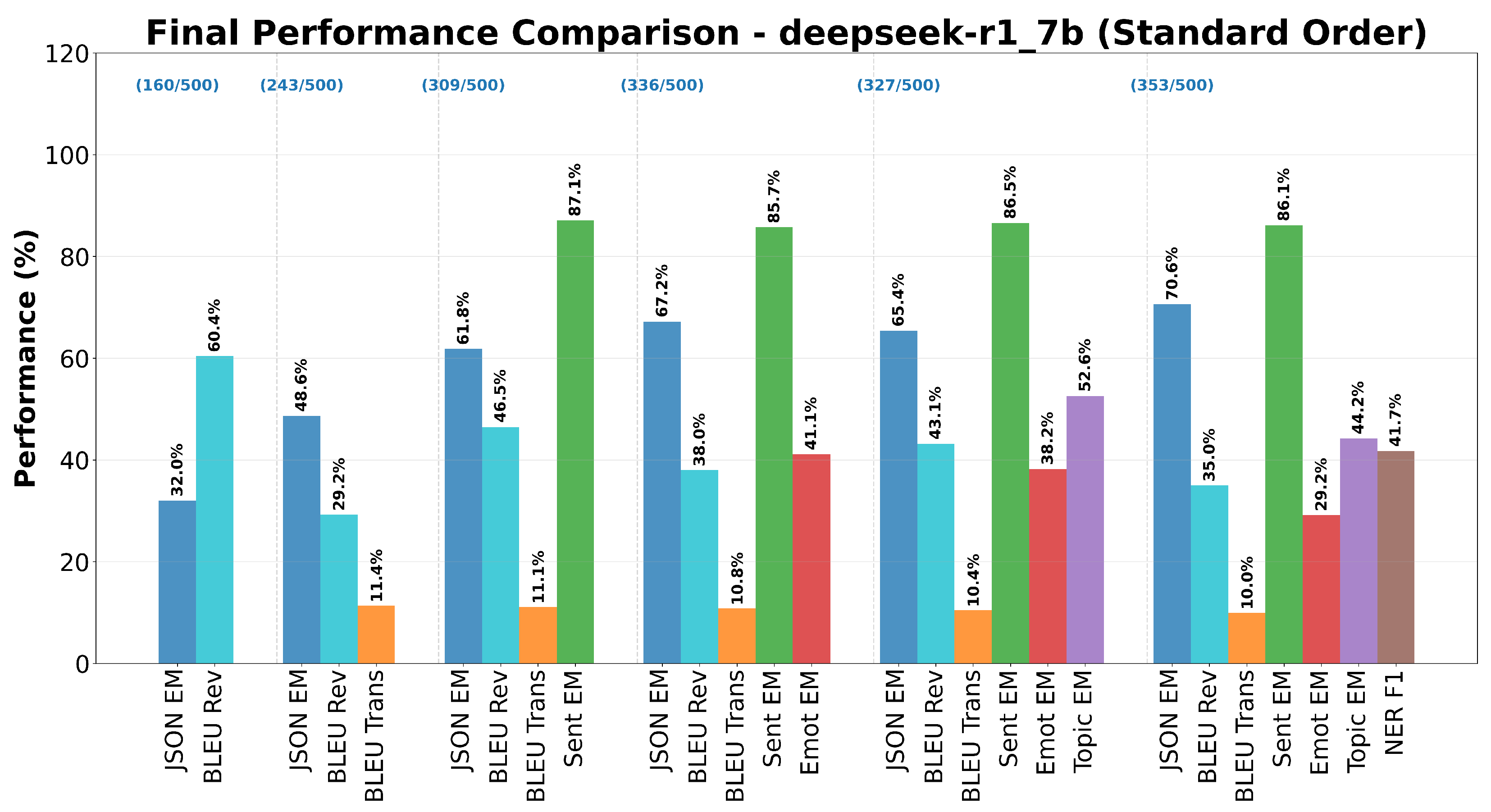 Figure 15. Final performance comparison for DeepSeek R1 7B across six tasks in Inverted Order.