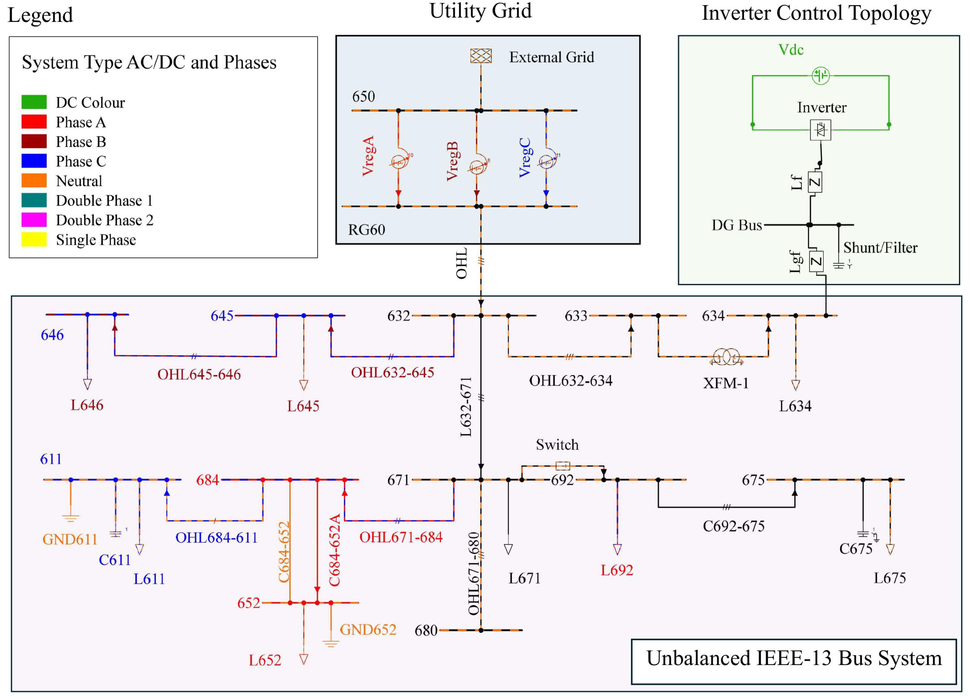 Grid conditions: Most controllers are tested only on balanced or mildly unbalanced grids, despite the fact that real-world distribution feeders often exhibit significant phase-voltage and current disparities. These imbalances arise from uneven load distribution, asymmetric line impedance, and diverse transformer configurations.