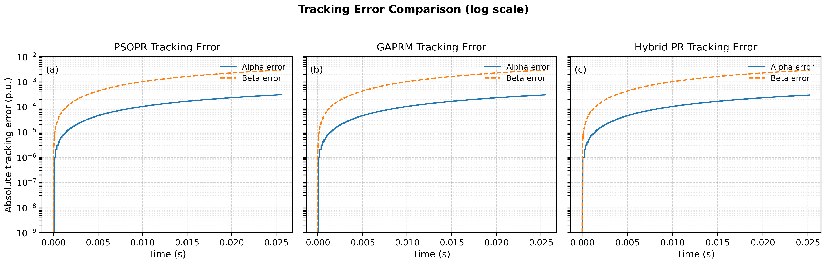 | [37] | 2014 | Damped PR with weighted current feedback (LC grid) | × | PR current loop | 1.56–1.74 | 2.5 ms | Genetic Algorithm | GA tuning heavy; paper does not test under grid fault disturbances |