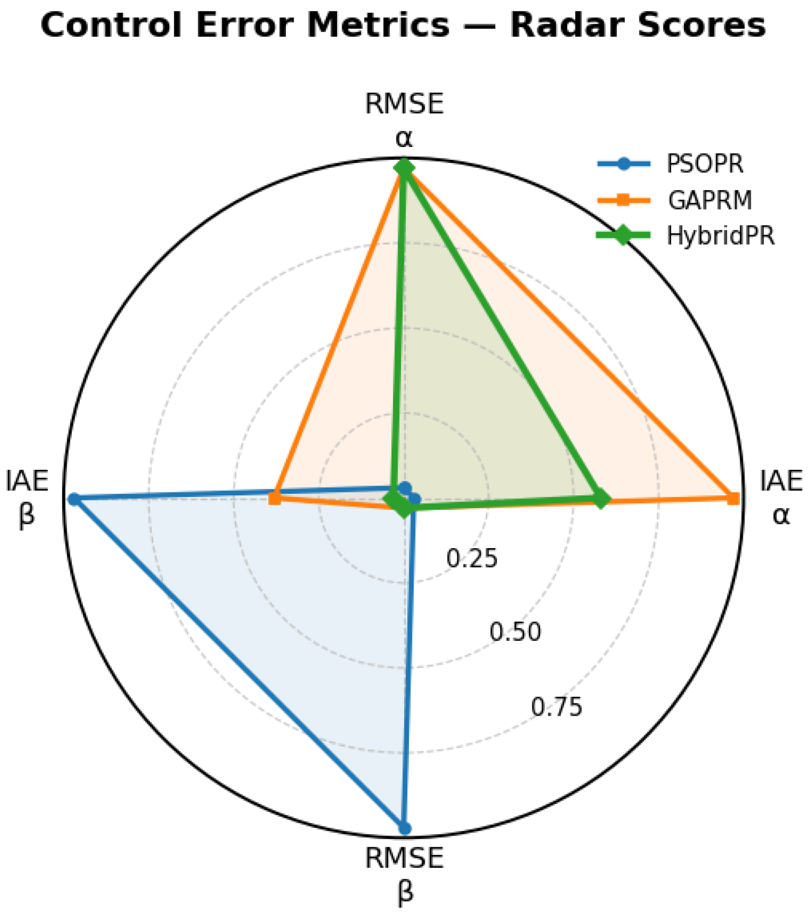 | Controller | Axis | Metric | PSO | GA | Hybrid PSO-GA |