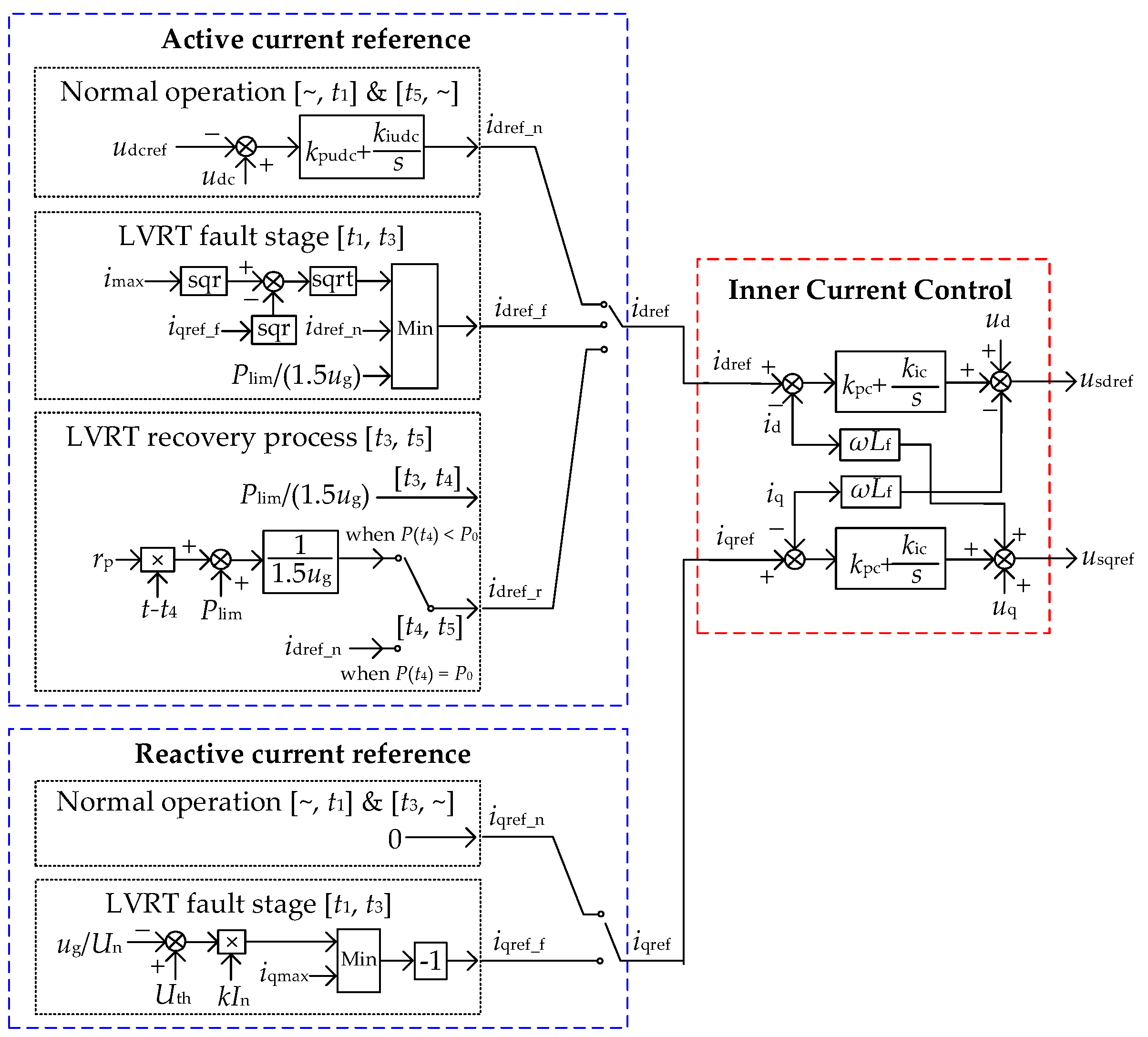 - Qi, J.; Li, W.; Chao, P.; Liang, X.; Sun, Y.; Li, Z. Generic EMT modeling method of Type-4 wind turbine generators based on detailed FRT studies. Renew. Energy 2021, 178, 1129–1143. [Google Scholar] [CrossRef]