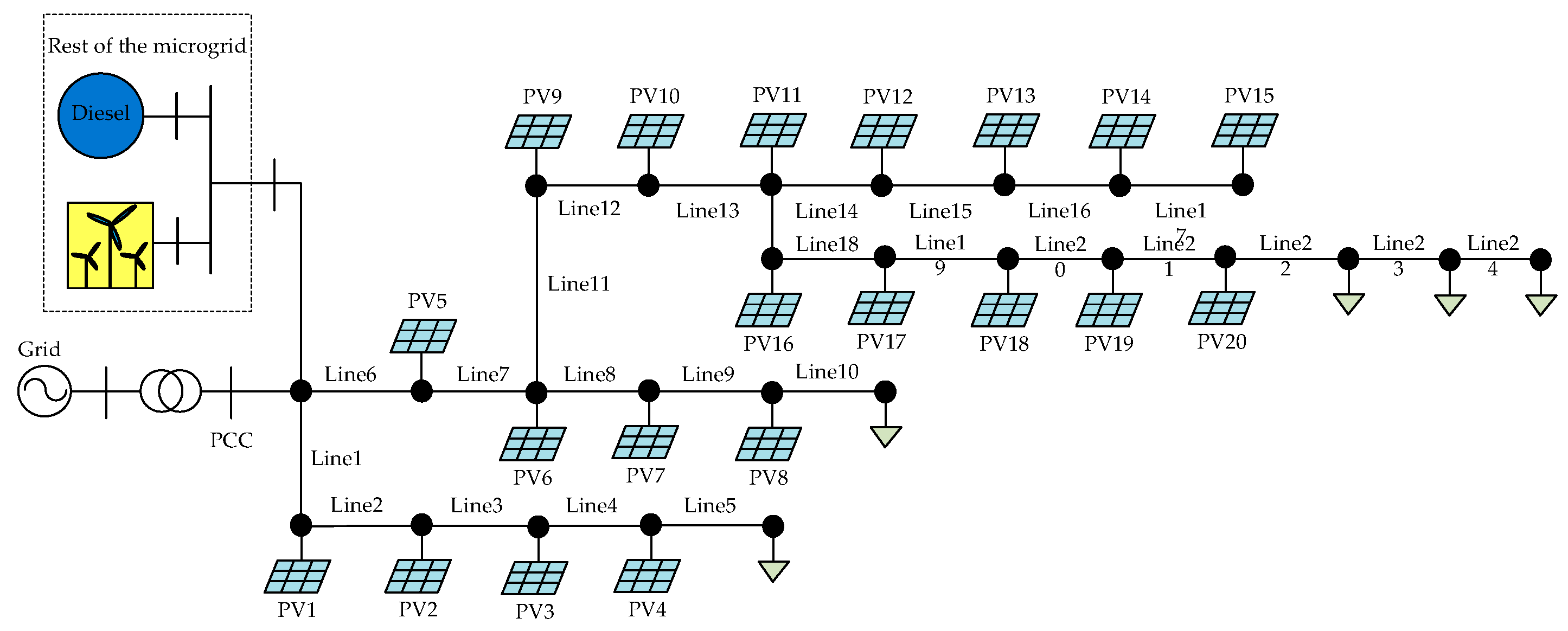 | Rated voltage of a distributed PV unit | 0.8 kV |
