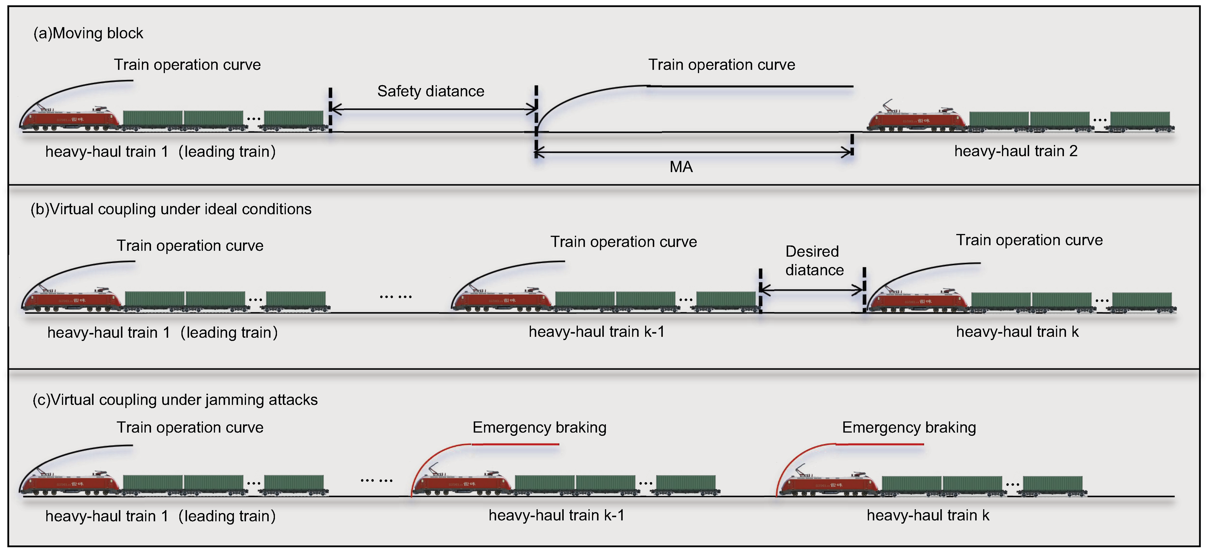 Together, these innovations establish a proactive, cross-layer defense mechanism that significantly enhances the resilience of virtual coupling train systems in heavy-haul railways. The remainder of this paper is organized as follows: