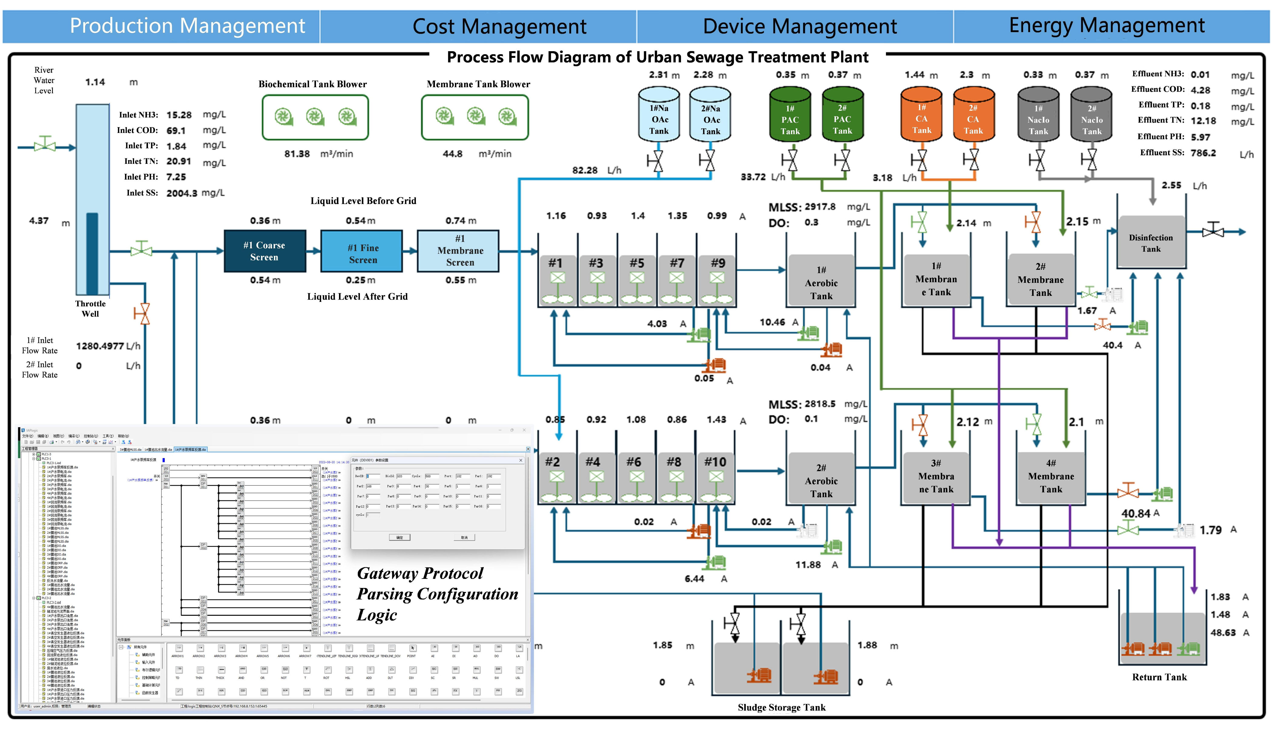 Figure 12. Application example of GMGbox in the SCADA System of a Sewage Treatment Plant.