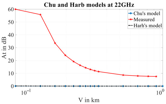 Chu’s and Harb’s predictions compared to measured attenuation at 22 GHz.