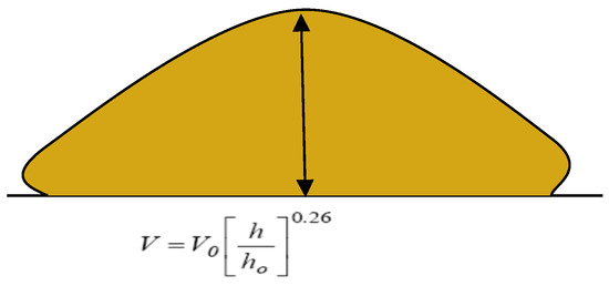 An experiment was performed for five years in Khartoum Sudan (1975–1980) for an earth–satellite station in Khartoum operating at 10 GHz [22]. In the computation, the maximum height of the dust storm was considered to be 4 km. The visibility along the path is not constant. The visibility (V) at any height (h) can be related to the visibility (Vo) at a reference height (ho), as shown in Figure 3, by the following relation