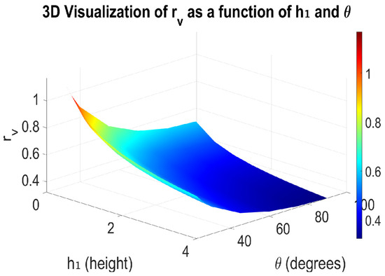 A 3D visualization of the vertical adjustment factor rv as a function of h1 and θ.