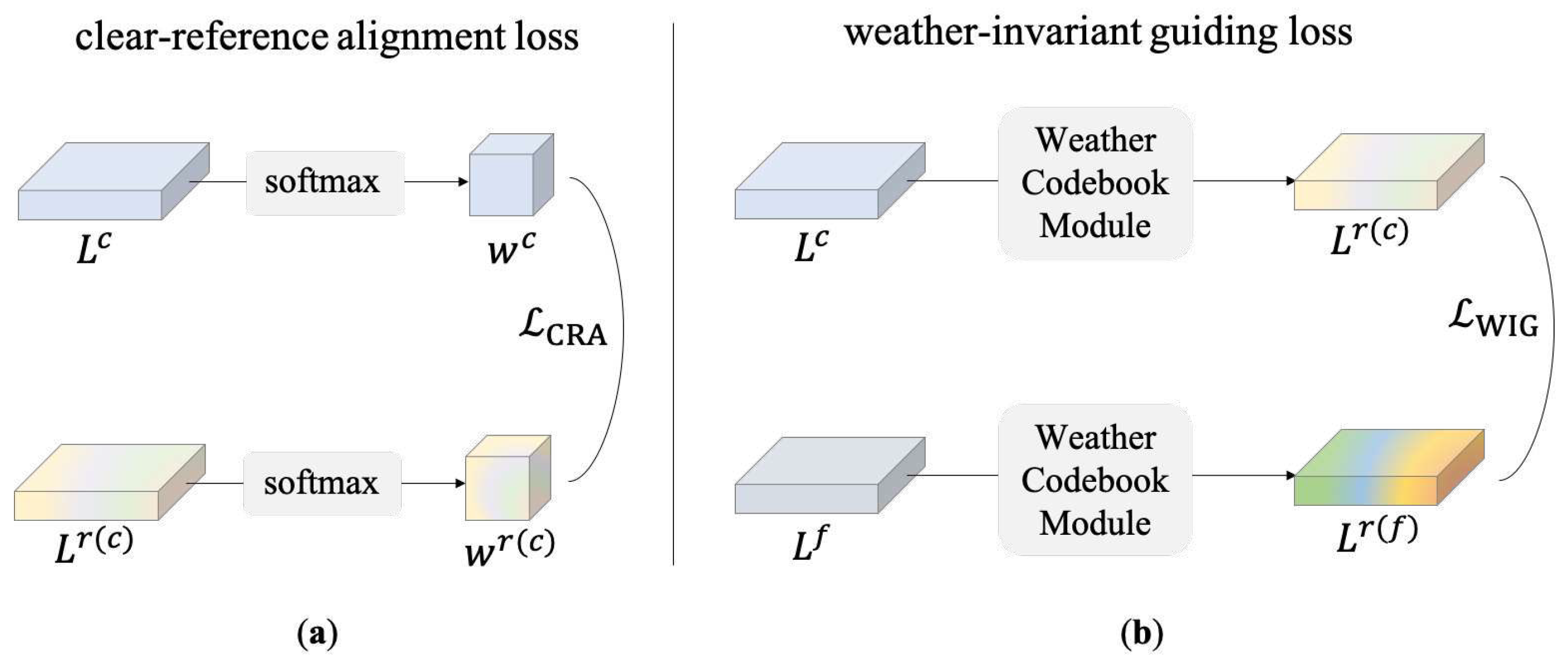 - A Weather Codebook module is designed to jointly train on paired clear and foggy scenes, enabling the network to learn, store, and generalize clear-scene reference features across diverse weather conditions. This mechanism facilitates the recall and reconstruction of clear-scene representations and enhances the network’s robustness and representational capacity when processing foggy inputs.