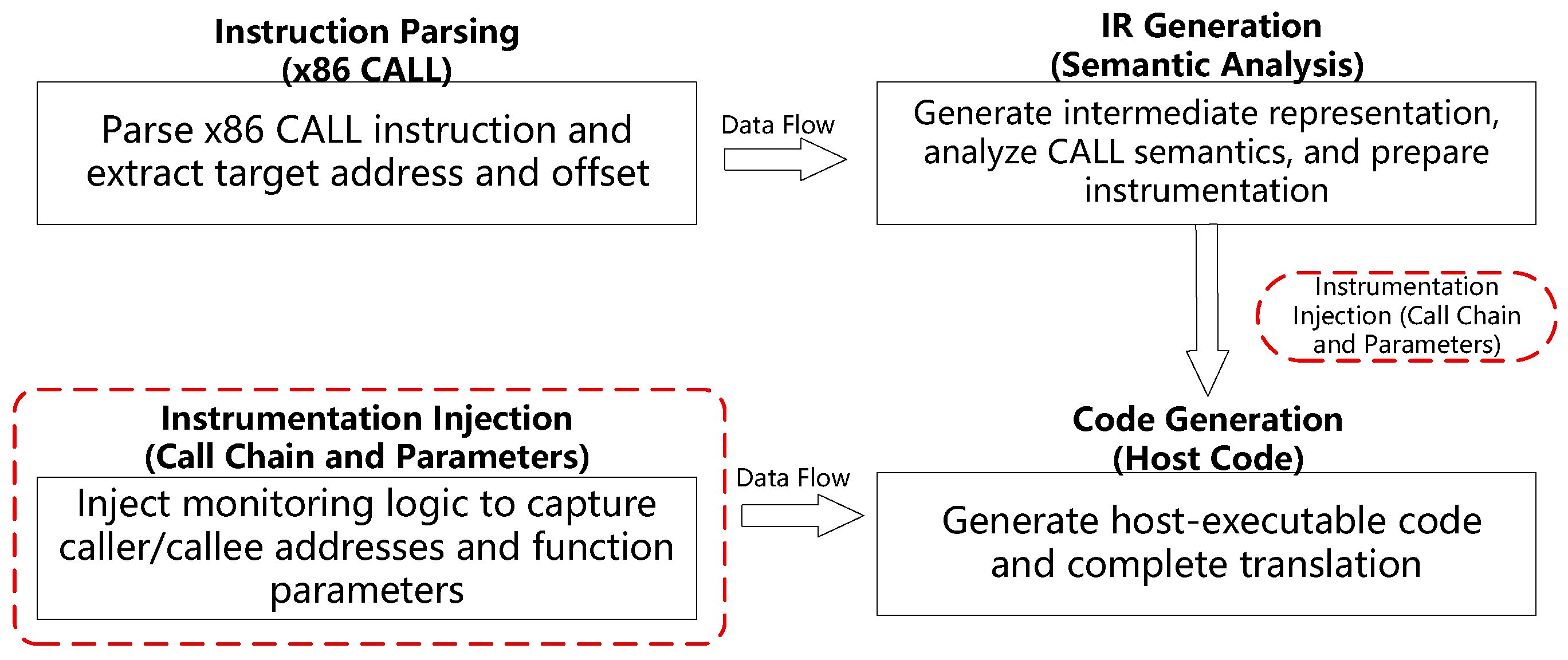 Figure 1. QEMU TCG translation and instrumentation workflow.