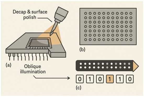 - Faraj, M.; Gebotys, C. Quiescent photonics side channel analysis: Low cost SRAM readout attack. Cryptogr. Commun. 2021, 13, 363–376. [Google Scholar] [CrossRef]