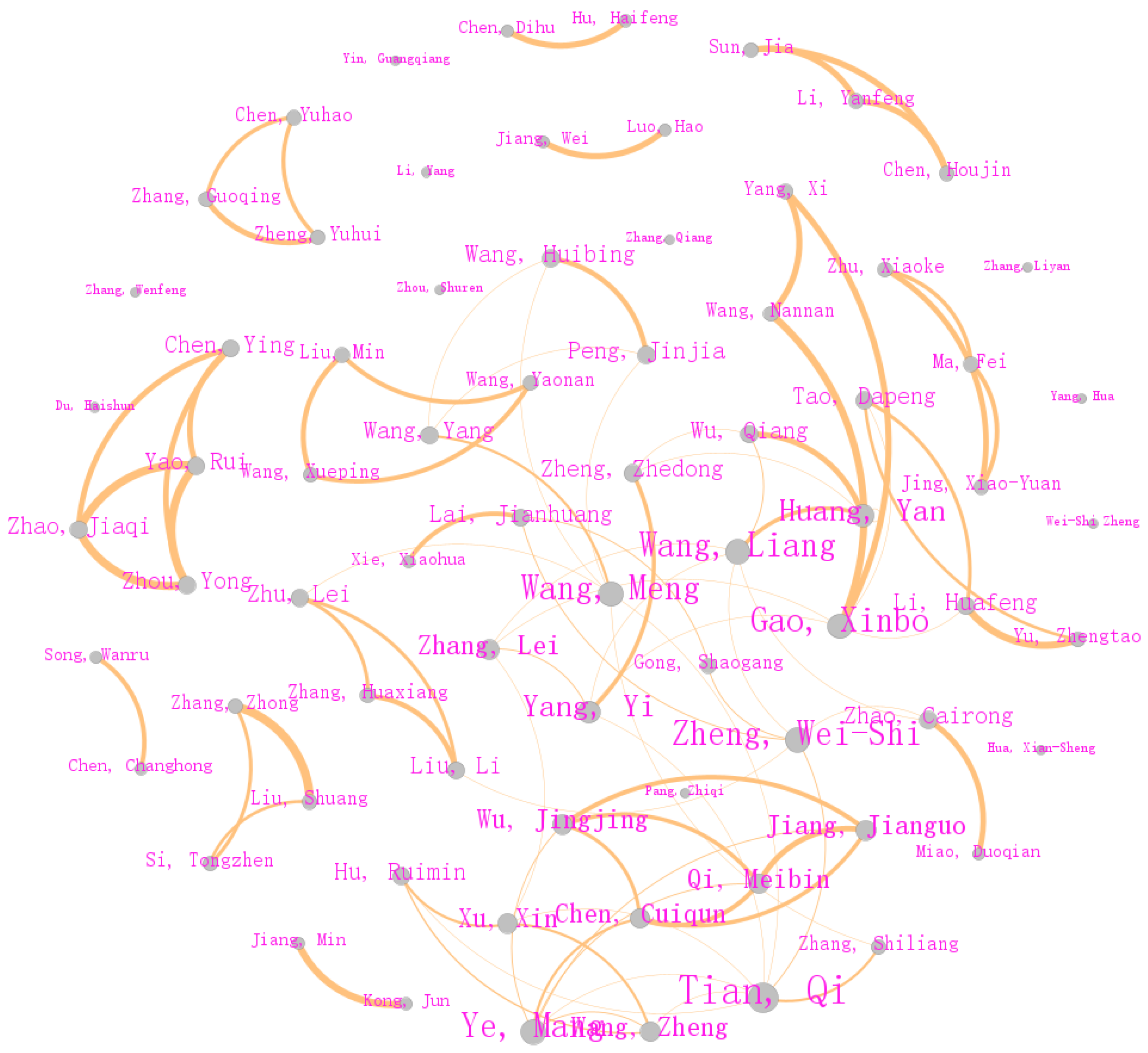 Filtering for nodes with degree ≥9 (top 1.35% of authors), we identified key research consortia driving methodological innovations (Figure 4). Leading teams advancing Re-ID paradigms include:
