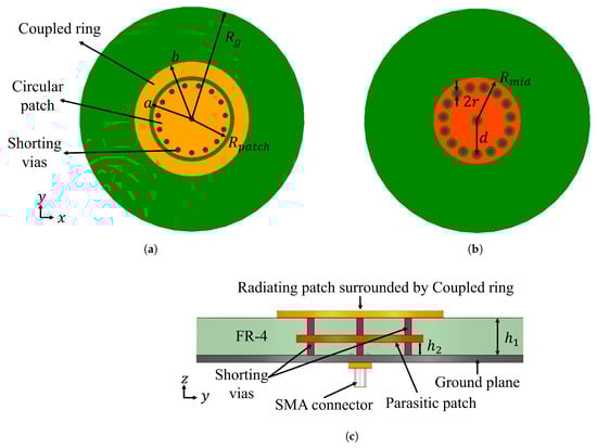 - Al-Zoubi, A.S.; Yang, F.; Kishk, A.A. A broadband center-fed circular patch–ring antenna with a monopole-like radiation pattern. IEEE Trans. Antennas Propag. 2009, 57, 789–792. [Google Scholar] [CrossRef]