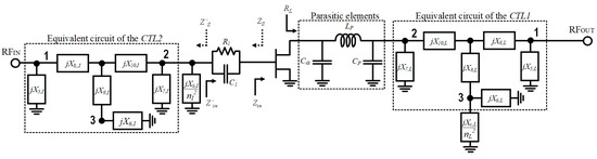 Equivalent circuit diagram of the PA using the proposed matching networks based on CTL.