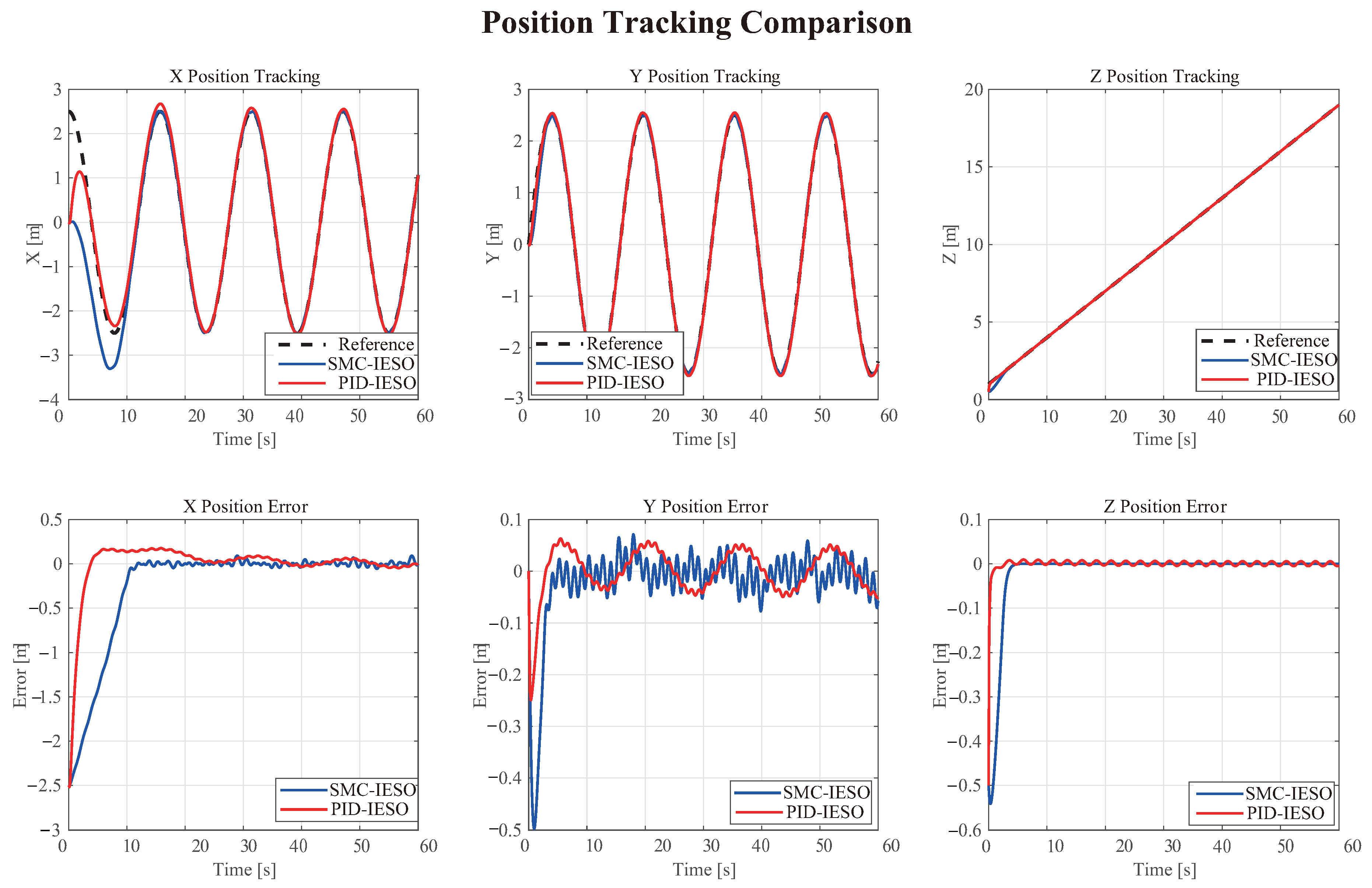 , the proposed SMC-IESO control strategy can ensure the asymptotic stability of the quadrotor’s vertical channel, achieving precise tracking of the desired altitude trajectory.