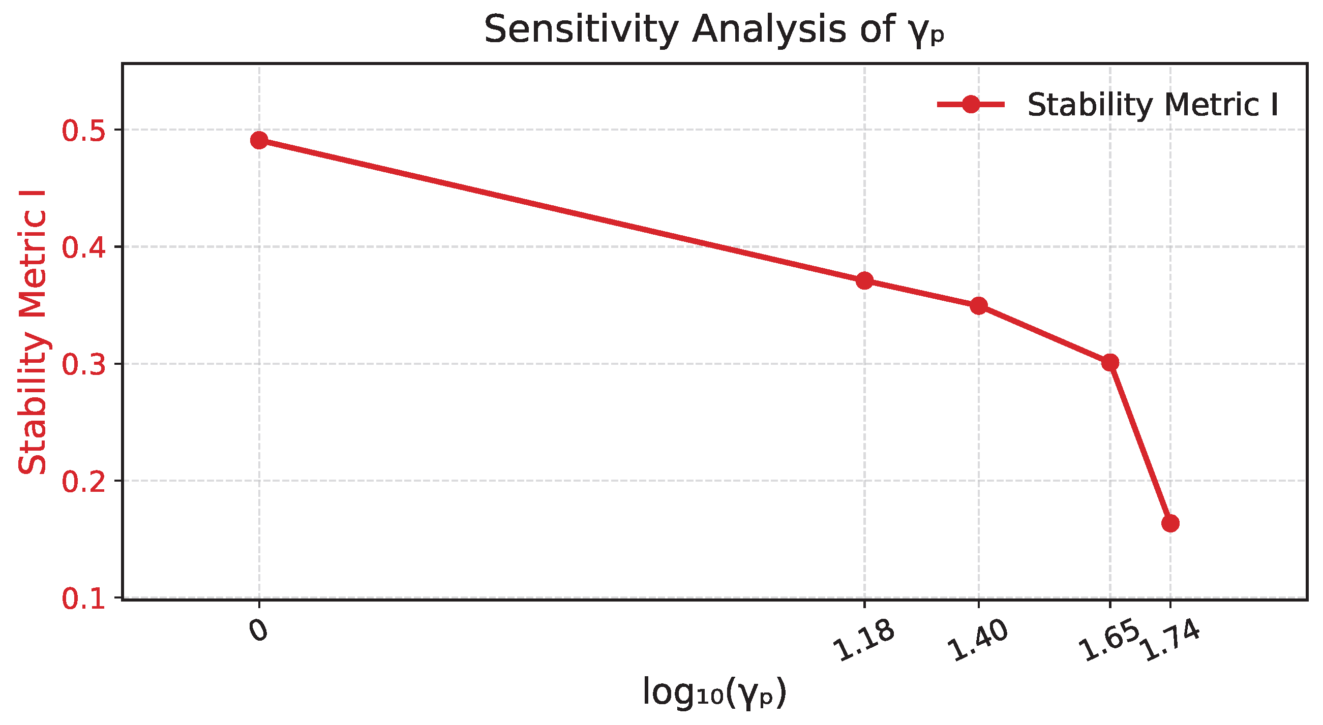 , indicating that stronger penalization of formation changes improves stability. The reduction is steep when