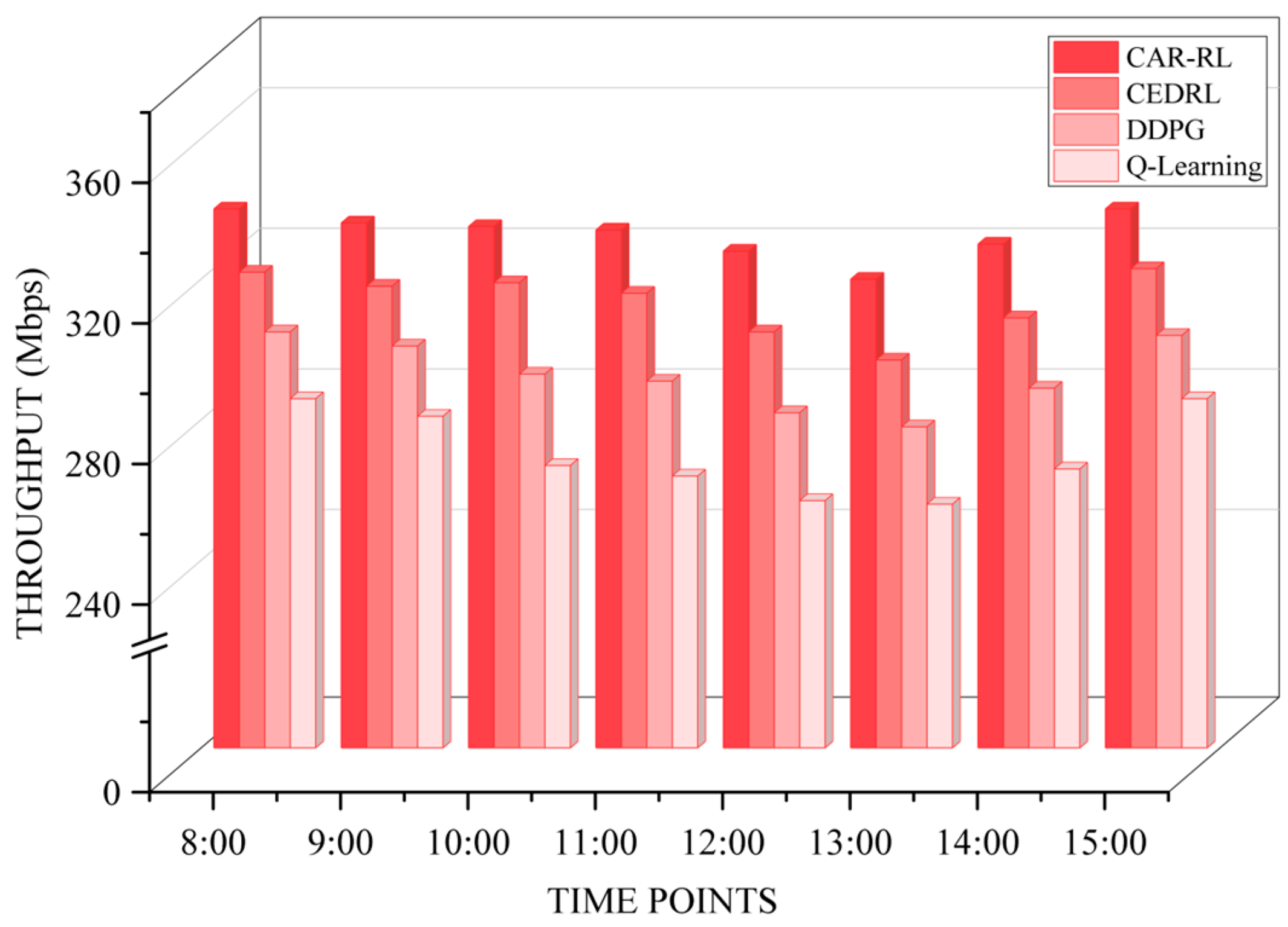 - We construct a four-layer CAR-RL system architecture, relying on SDN and K8S to provide data input for computing-aware routing, and use it to verify the performance of the CAR-RL algorithm. Simulation experiments based on the Mininet platform show that compared to other algorithms such as Q-Learning, the CAR-RL algorithm improves the average packet loss rate, latency, and throughput by approximately 24.7%, 35.6%, and 23.1%, respectively.