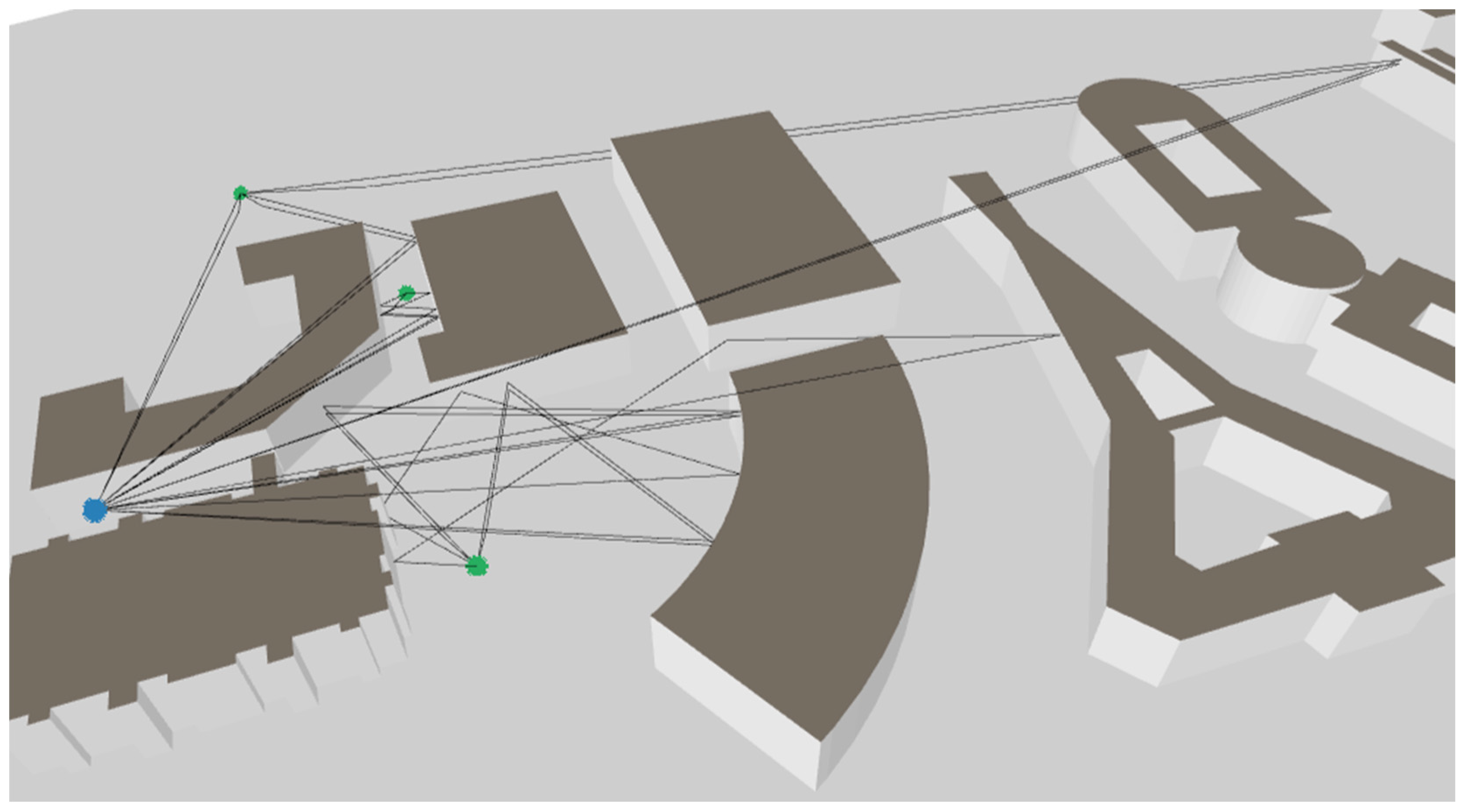 | Rx positions | Rx1: (310.2, −43.24, 1.5) m Rx2: (278.4, −138.8, 1.5) m Rx3: (295.0, −218.0, 1.5) m |