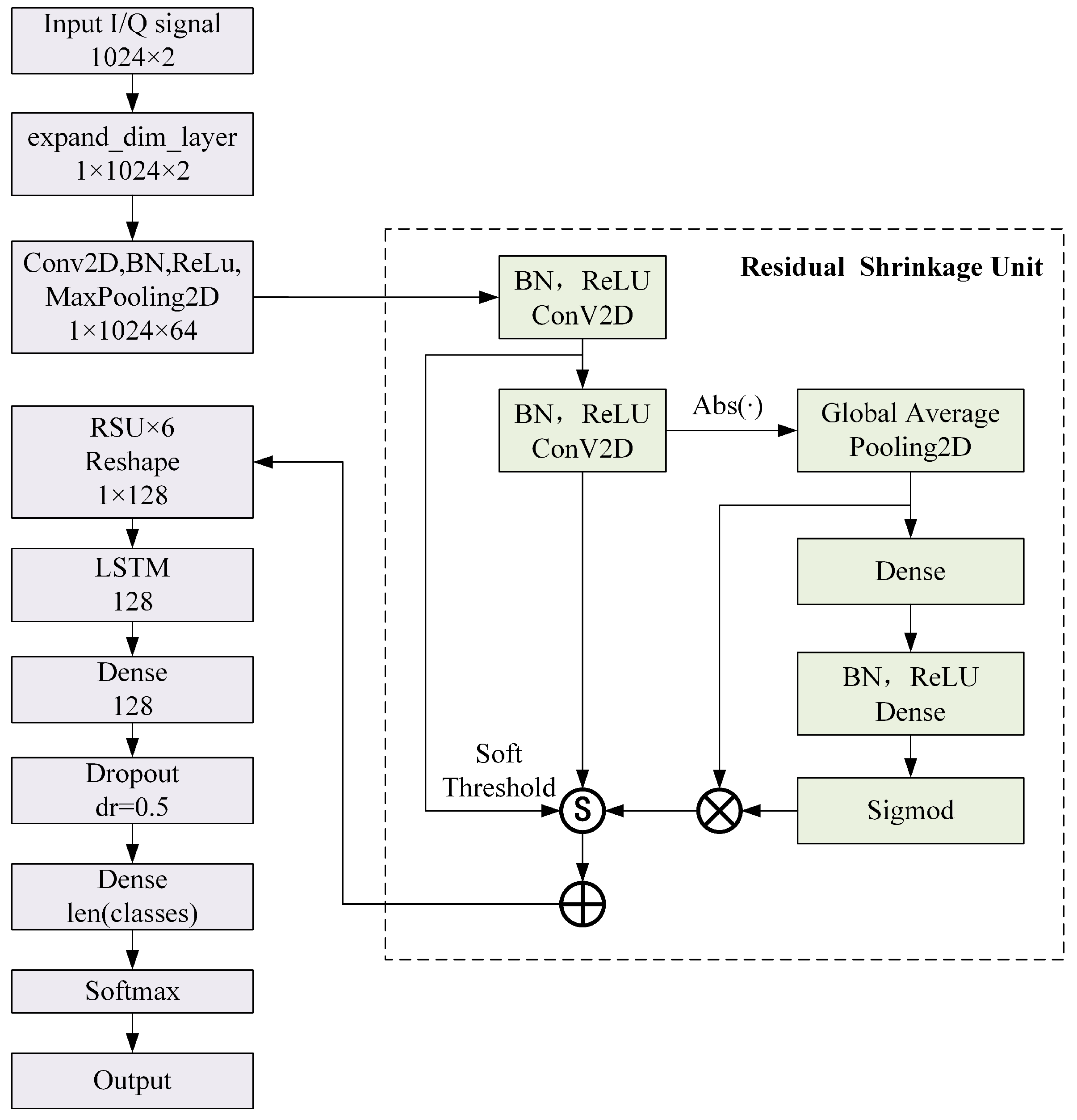 Chicago/Turabian StyleTan, Ping, Dongxu Chen, Kaijun Zhou, Yi Shen, and Shen Zhao. 2025. "Signal Modulation Recognition Based on DRSLSTM Neural Network" Electronics 14, no. 22: 4424. https://doi.org/10.3390/electronics14224424