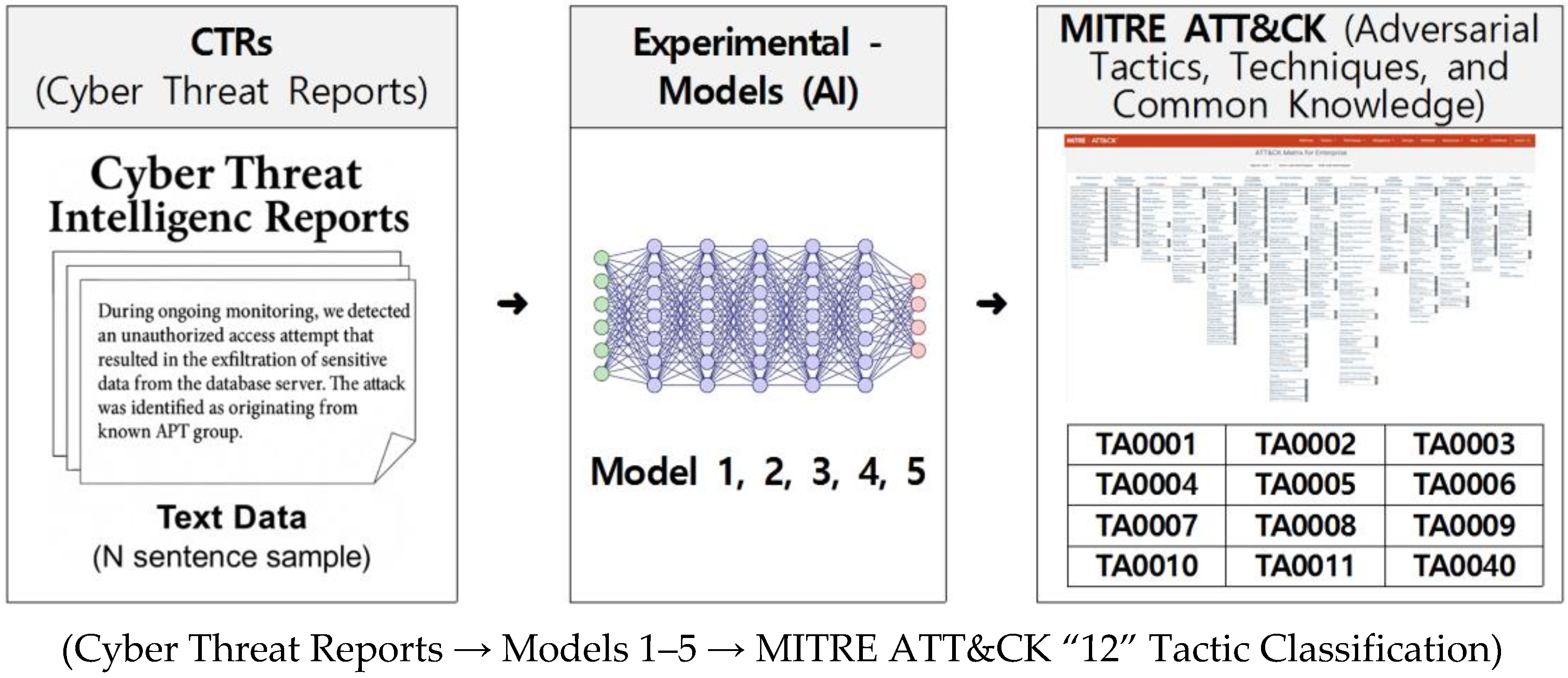 - Gabrys, R.; Bilinski, M.; Fugate, S.; Silva, D. Using natural language processing tools to infer adversary techniques and tactics under the Mitre ATT&CK framework. In Proceedings of the 2024 IEEE 14th Annual Computing and Communication Workshop and Conference (CCWC), Las Vegas, NV, USA, 8–10 January 2024; pp. 0541–0547. [Google Scholar] [CrossRef]