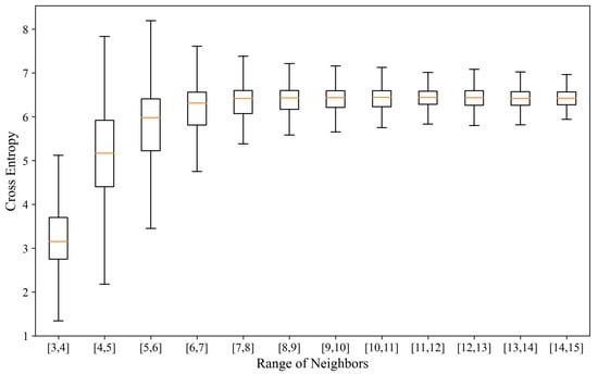 Experimental result: cross-entropy under different local neighbor counts in Draughts.