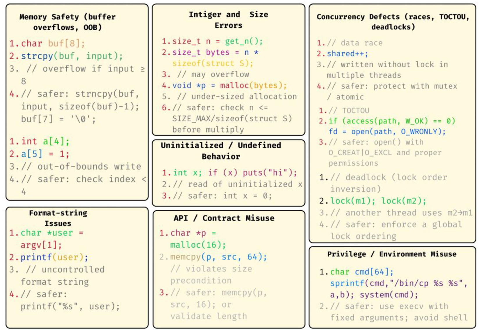 | Buffer Overflow | Continues to dominate the 2024 CWE Top 25 due to memory corruption risks in unmanaged languages. | The SQL Slammer worm (2003) exploited such a bug to cause global outages within minutes. | [43] |