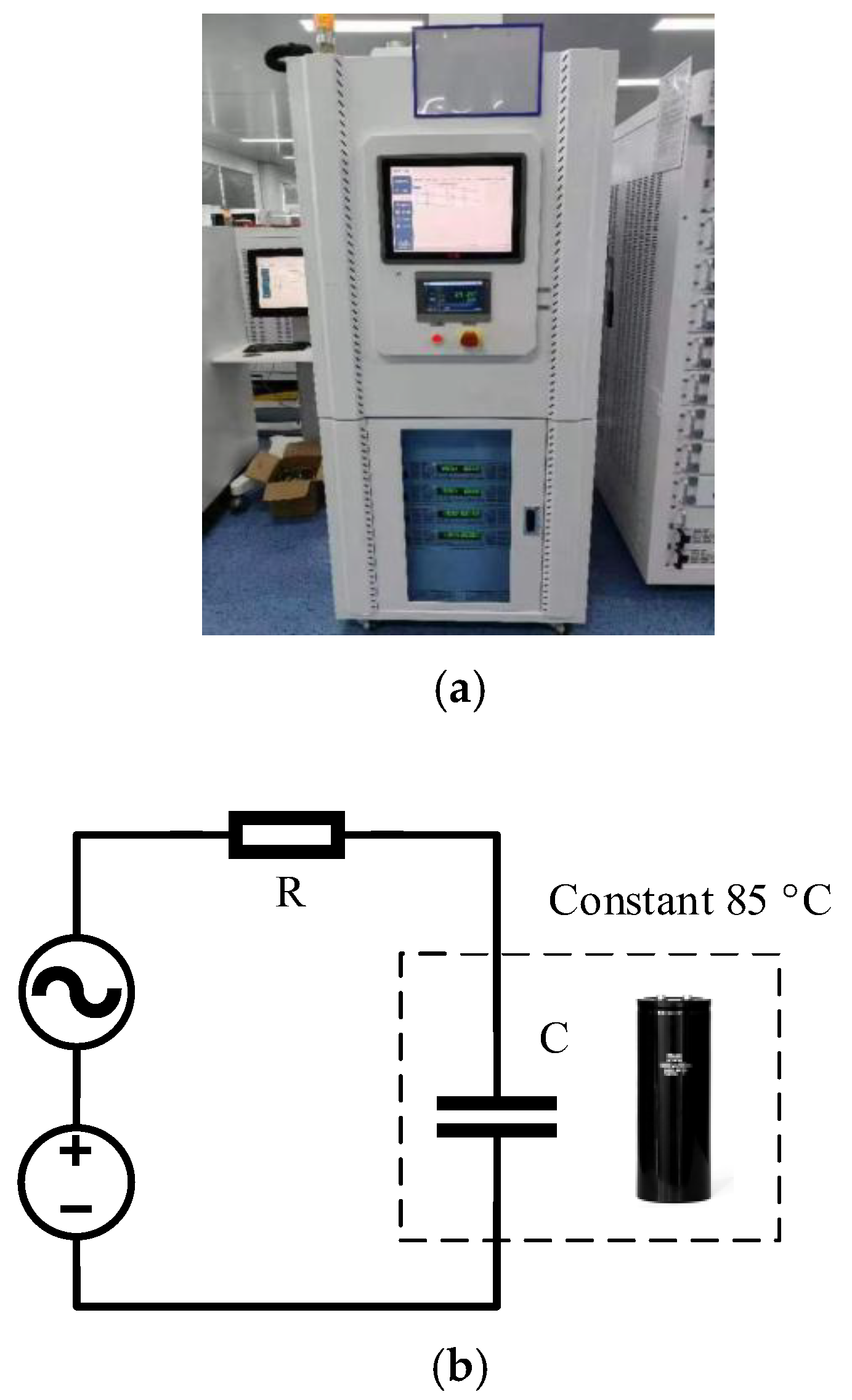 - Cheng, L.; Li, Z.; Wang, J.; Xu, Z.; Liu, W.; Li, S. Degradation Behavior and Mechanism of Metalized Film Capacitor Under Ultrahigh Field. IEEE Trans. Dielectr. Electr. Insul. 2023, 30, 509–517. [Google Scholar] [CrossRef]