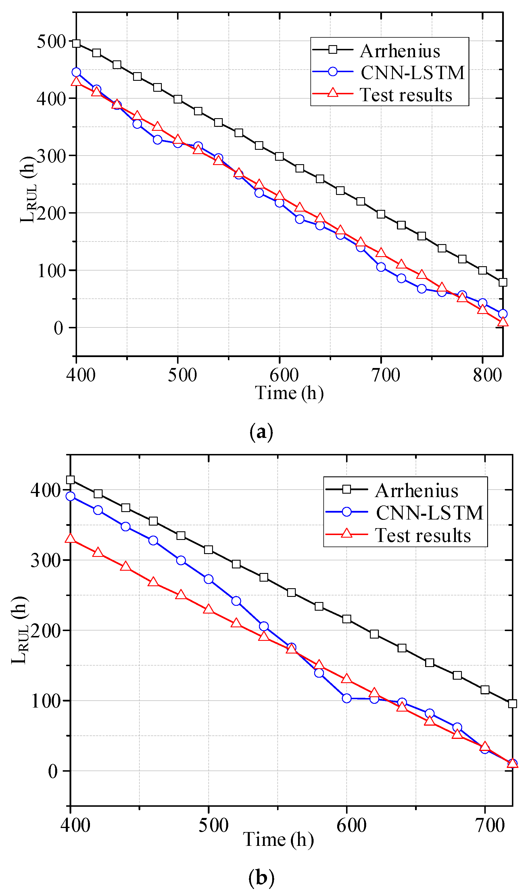 | RUL (h) | Actual | Proposed | Arrhenius |