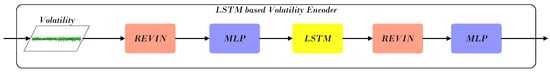 where denotes a nonlinear activation (e.g., ReLU). Subsequently, an LSTM layer captures temporal dependencies within the volatility sequence: