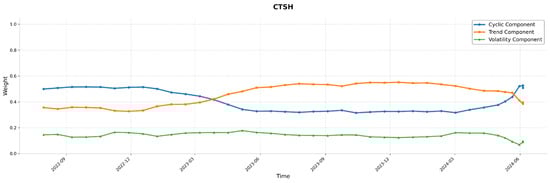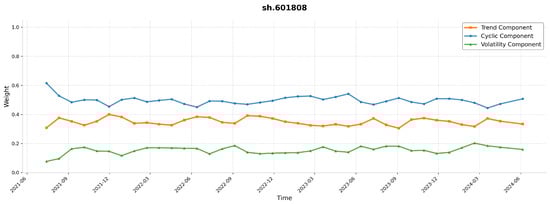 Here, denotes the sigmoid activation function, and ⊙ represents element-wise multiplication. The gating variables , , and correspond to the attention weights of the trend, cyclic, and volatility components, respectively. These parameters are dynamically adjusted according to the temporal and contextual patterns of the stock data.