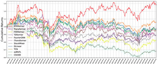 Future work includes considering more diverse trading strategies (e.g., dynamic weight allocation, multi-cycle rebalancing) to explore their impacts on risk-adjusted metrics (Sharpe ratio, maximum drawdown, annualized return)—further aligning HRformer’s evaluation with practical financial settings—and exploring log-return inputs by reconfiguring the Multi-Component Decomposition Layer and retuning encoders for return-series dynamics. Beyond finance, the core HRformer design—multi-component decomposition, component-wise temporal encoding, adaptive fusion, and cross-entity attention—may generalize to other non-stationary domains such as traffic forecasting and battery health estimation.