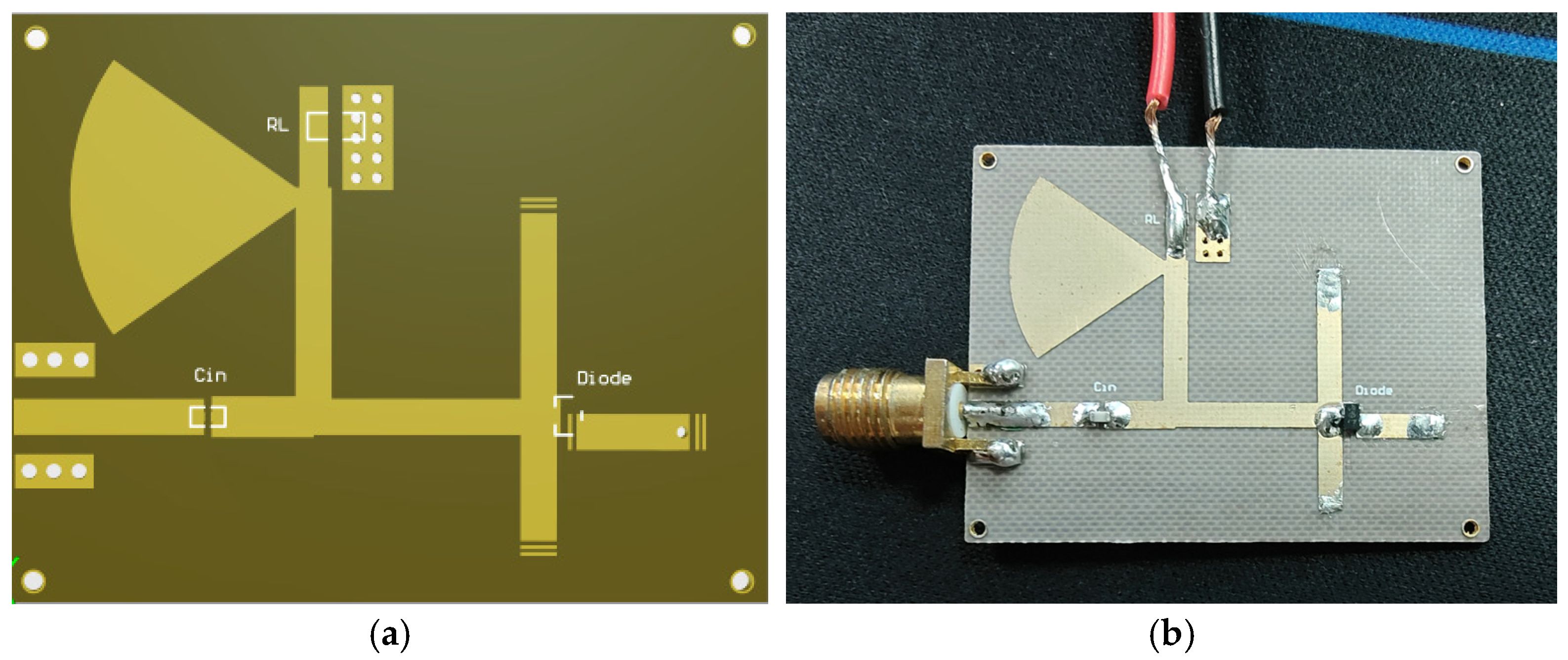 - Bui, G.T.; Nguyen, D.-A.; Seo, C. A Novel Design of Dual-Band Inverse Class-F Shunt-Diode Rectifier for Energy Harvesting. IEEE Trans. Circuits Syst. II Express Briefs 2023, 70, 2345–2349. [Google Scholar] [CrossRef]