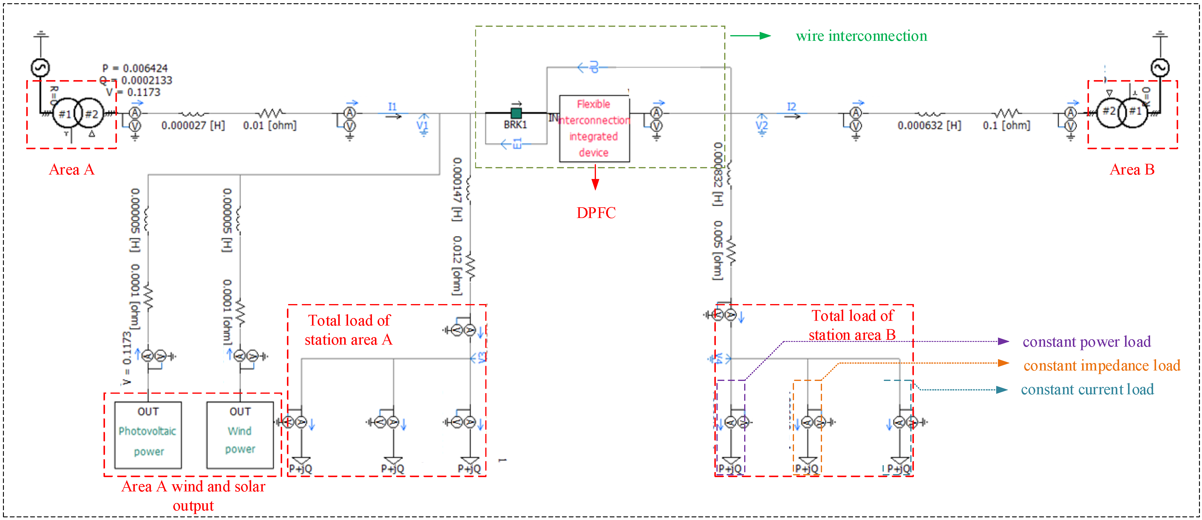Figure 2. Interconnected regional power grid equipped with distributed power flow controller.