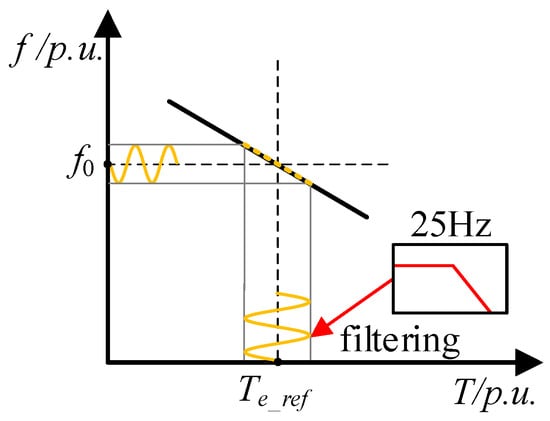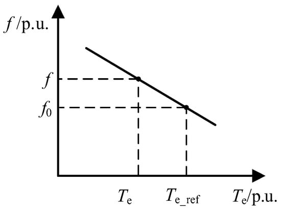 During normal system operation, variations in synchronous speed can be neglected, and the stator-side electromagnetic power is proportional to the electromagnetic torque. Therefore, by analogy with the droop characteristic of a synchronous generator, a droop curve between electromagnetic torque and frequency is constructed as in Figure 6: