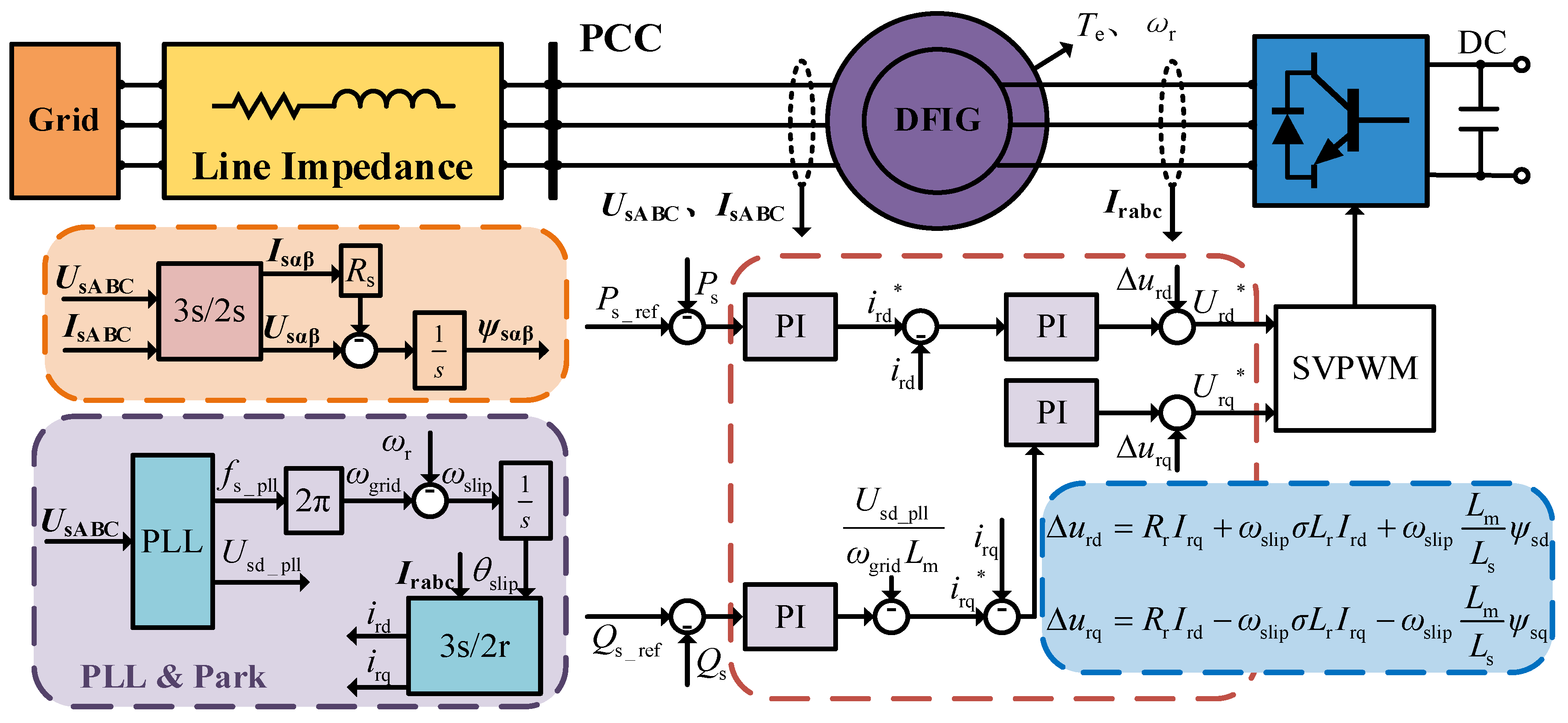 2.1. DFIG Mathematical Modeling and Grid-Following Control