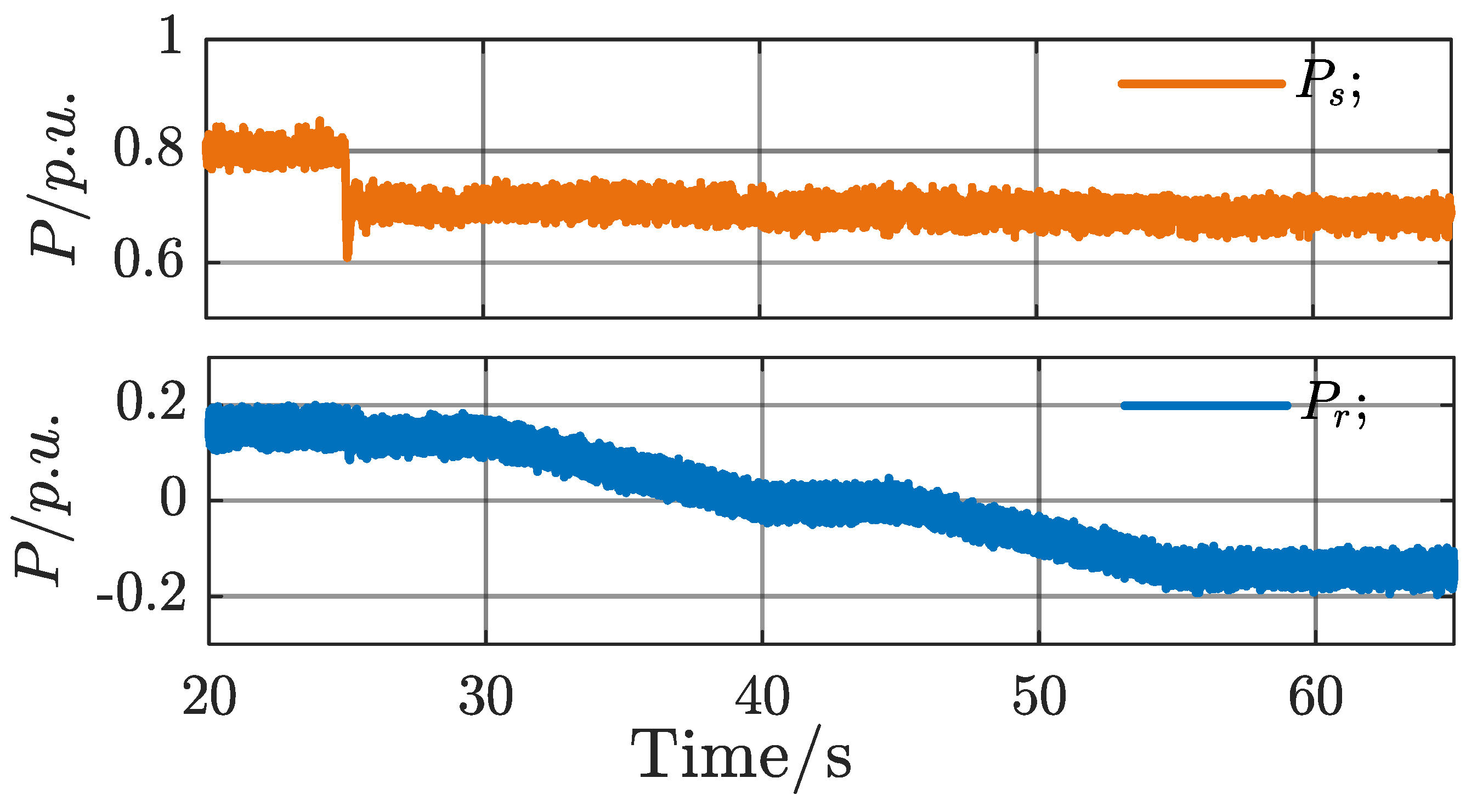 - Zhan, L.; Hu, B.; Li, H.; Zhao, Z.; Chen, L.; Nian, H.; Qi, D. Transient Modeling and Postfault Stability Analysis of GFM-DFIG Considering Rotor-Side Current Limitation. IEEE Trans. Power Electron. 2025, 40, 11979–11984. [Google Scholar] [CrossRef]