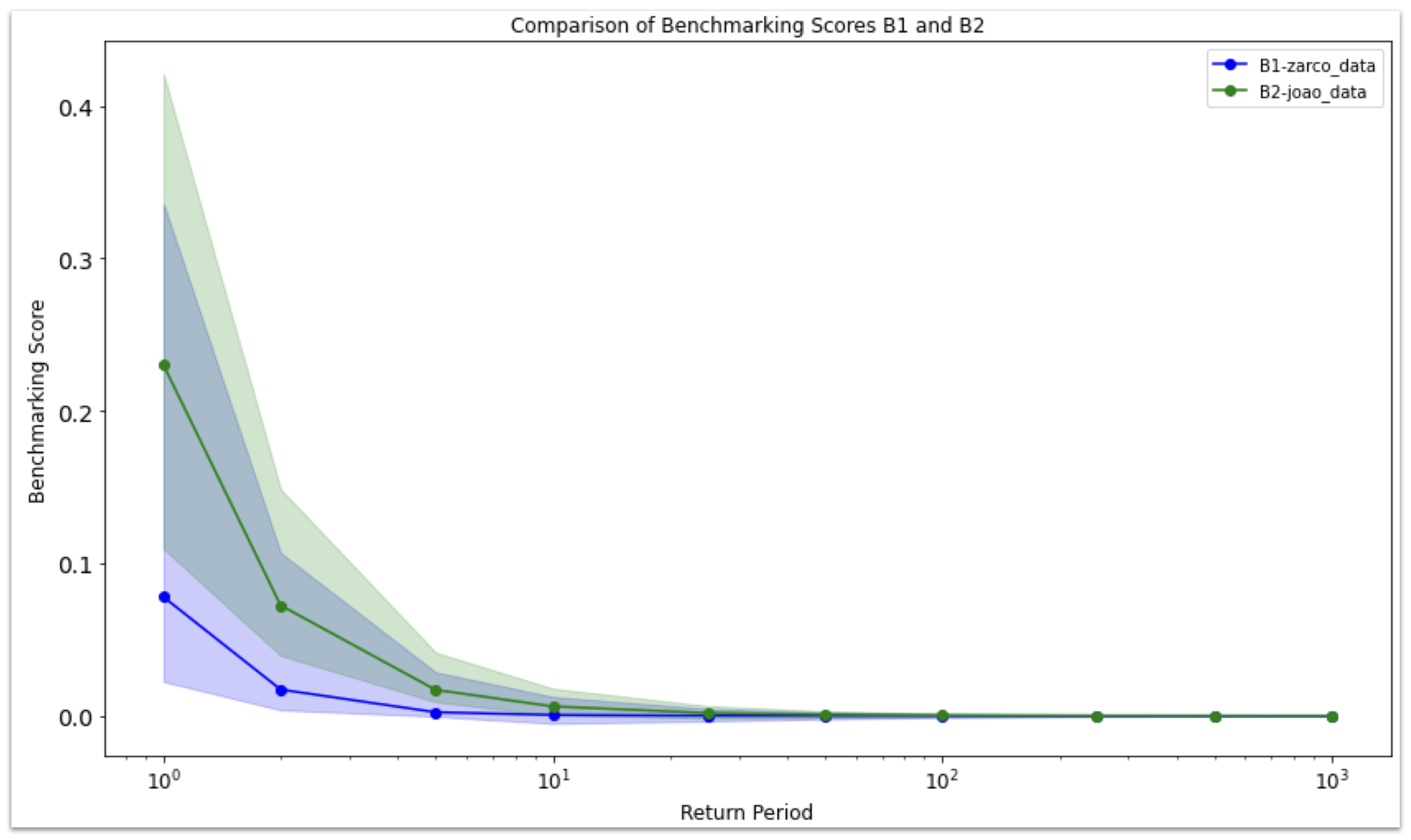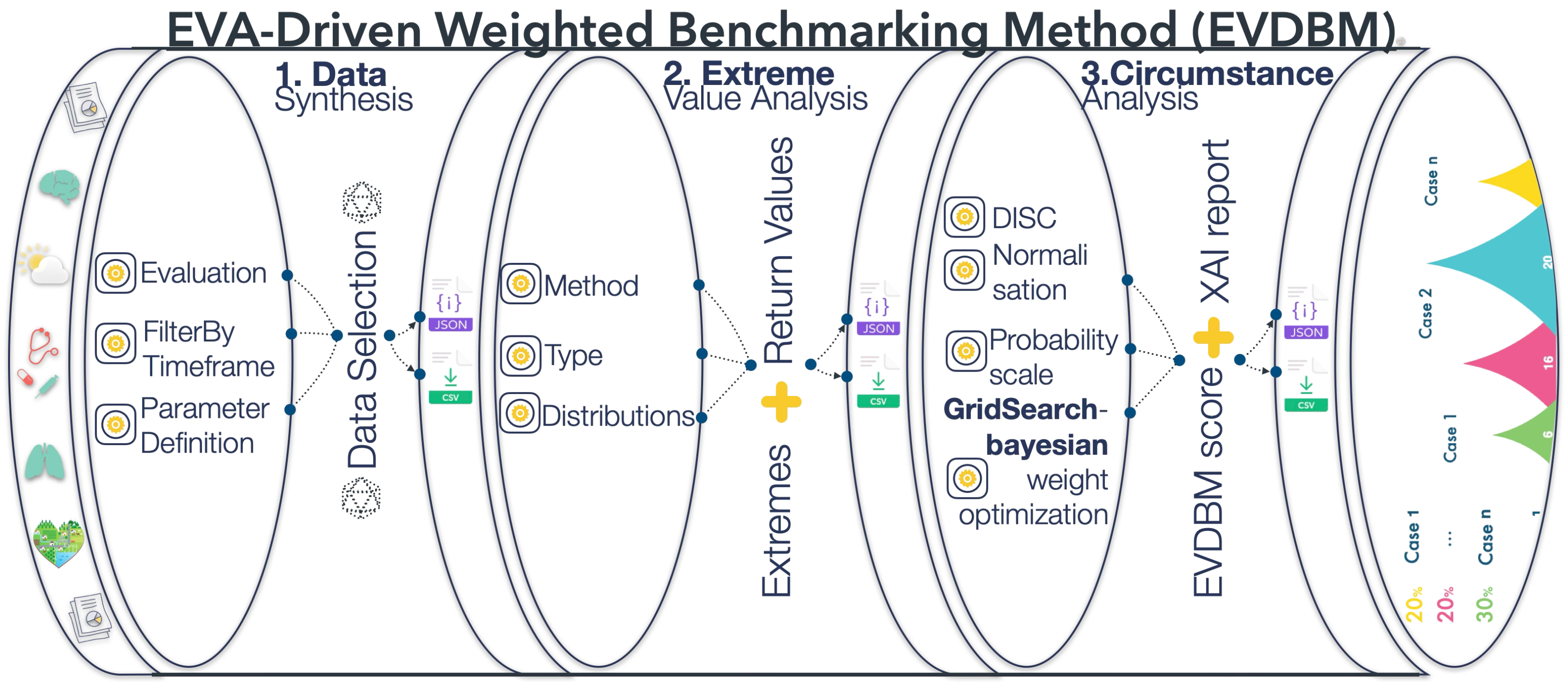 Additionally, the EVDBM methodology provides a robust quantitative mechanism for comparing different use cases by generating a final benchmarking score based on weighted performance during extreme events. This scoring system incorporates both the frequency of past extreme events and the predicted severity and likelihood of future occurrences, projecting how related conditions tied to the EVA-dependent variable behave under projected stress. By integrating historical data with probabilistic projections, EVDBM offers a forward-looking performance evaluation and, thus, enables a meaningful comparison of cases under extreme conditions.