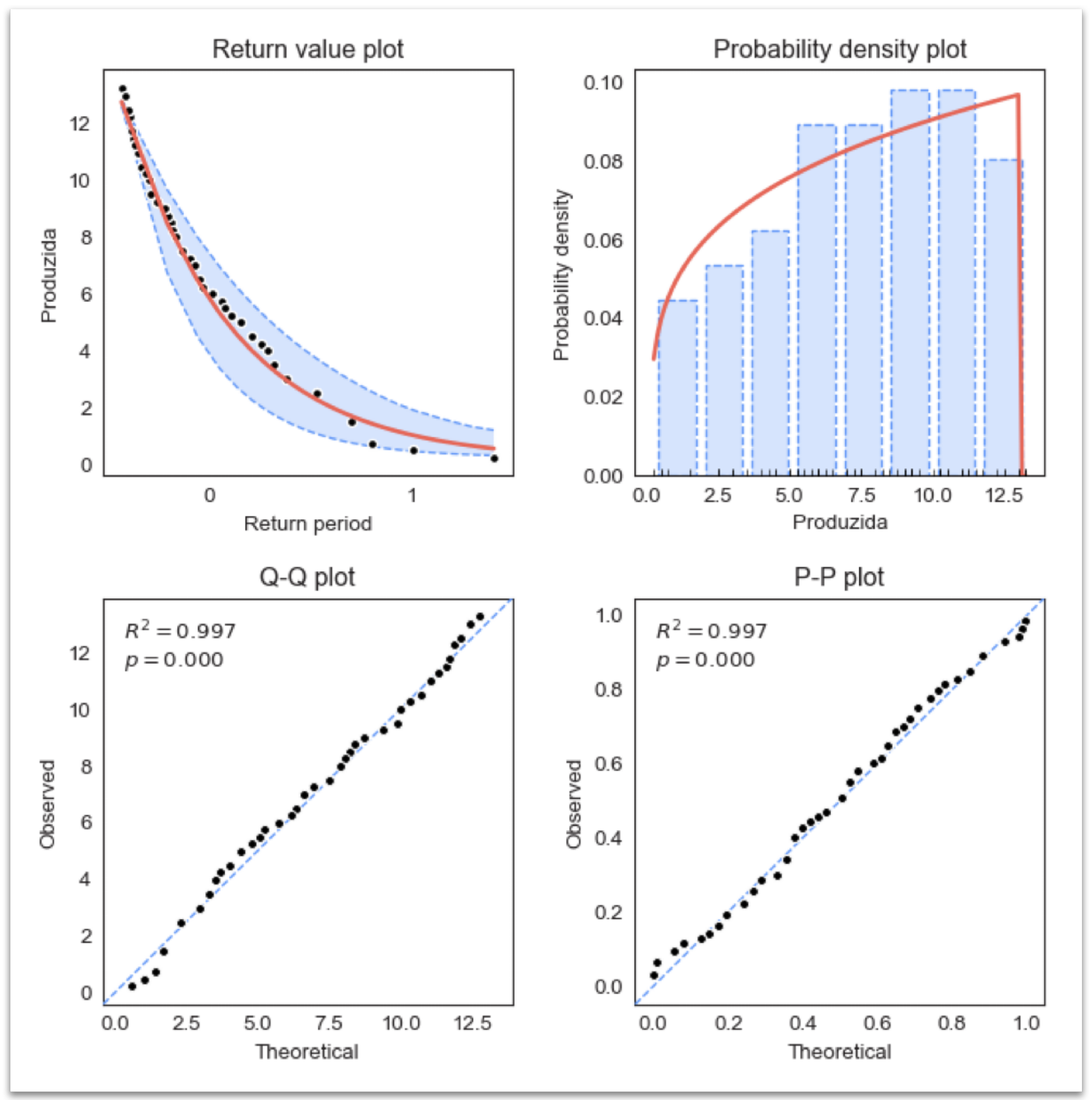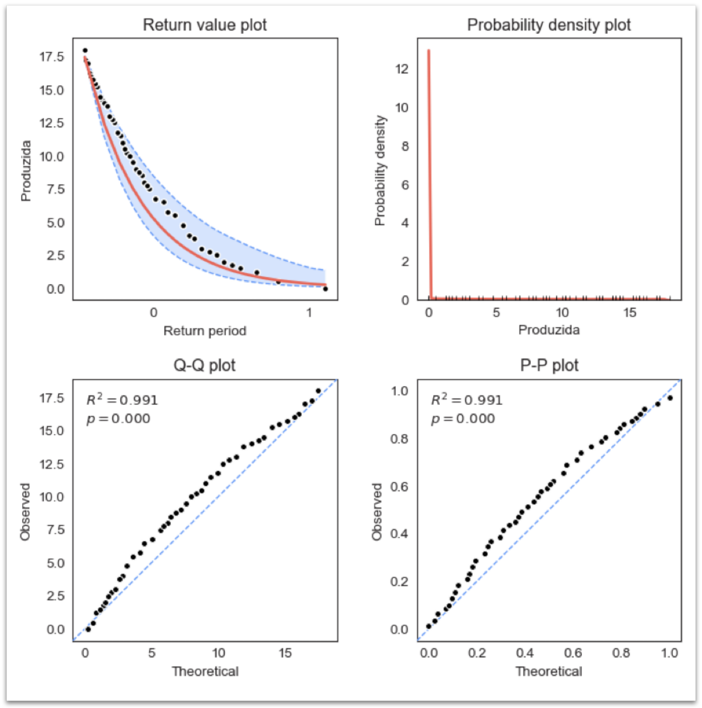 Following the previous approach we filter the data as per the time range under the chosen percentile and apply EVA. As can be seen in the return value plot in