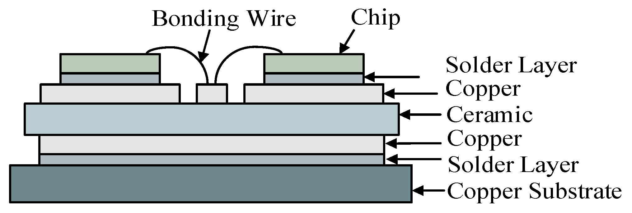 - Yang, L.; Agyakwa, P.A.; Johnson, C.M. Physics-of-failure lifetime prediction models for wire bond interconnects in power electronic modules. IEEE Trans. Device Mater. Reliab. 2012, 13, 9–17. [Google Scholar] [CrossRef]