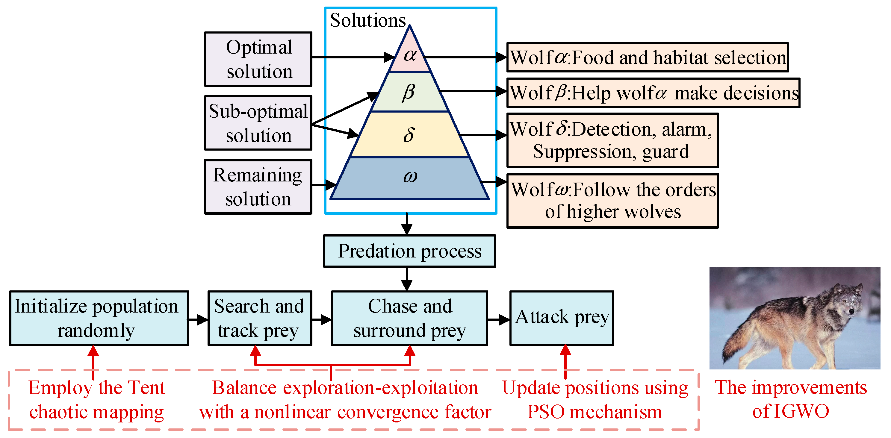 - Teng, Z.; Lv, J.; Guo, L.; Xu, Y. An Improved Hybrid Grey Wolf Optimization Algorithm Based on Tent Mapping. J. Harbin Inst. Technol. 2018, 50, 40–49. [Google Scholar]
