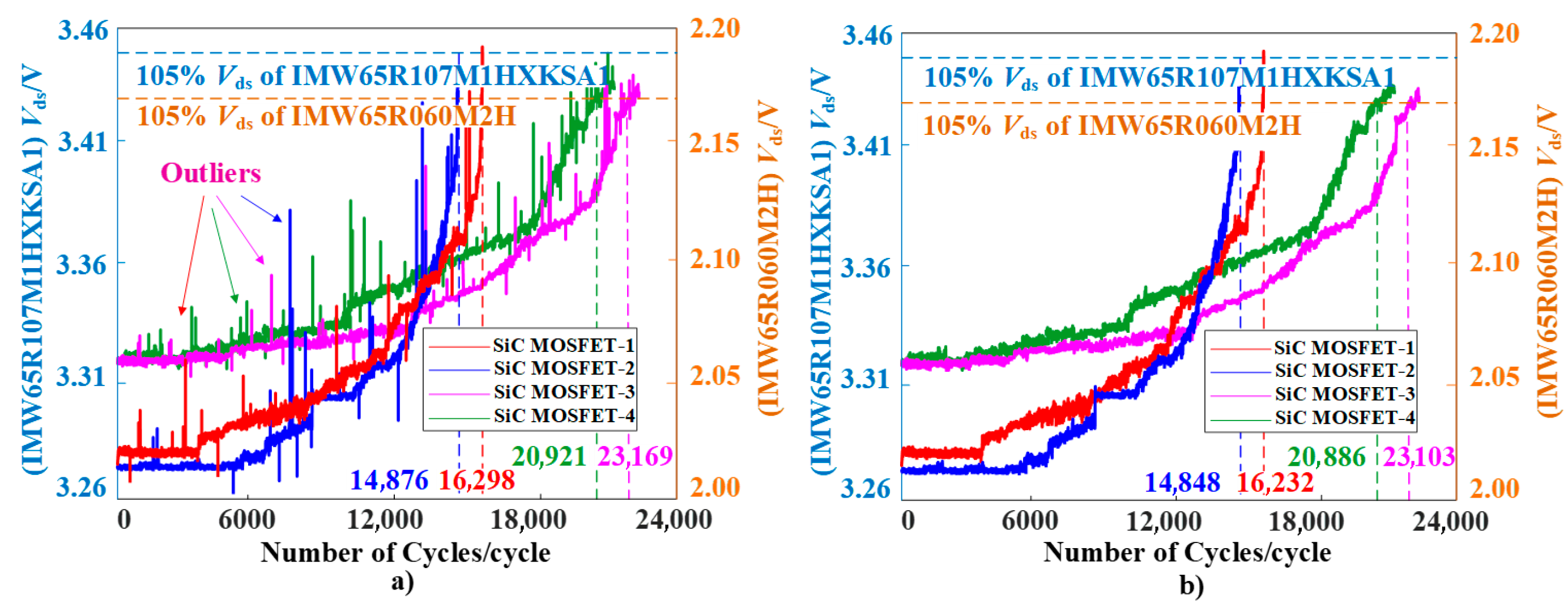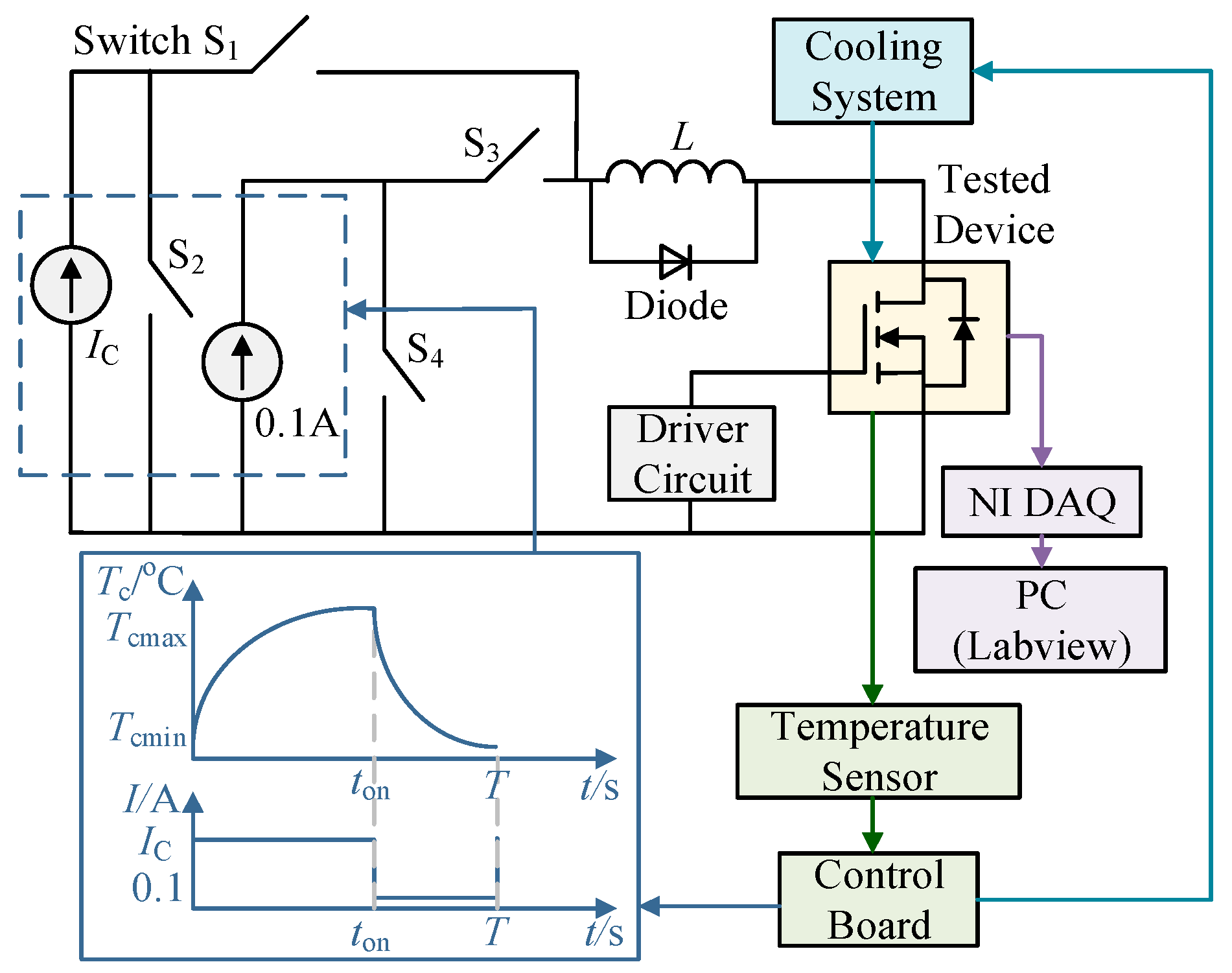 - Pu, S.; Yang, F.; Vankayalapati, B.T.; Akin, B. Aging Mechanisms and Accelerated Lifetime Tests for SiC MOSFETs: An Overview. IEEE J. Emerg. Sel. Top. Power Electron. 2022, 10, 1232–1254. [Google Scholar] [CrossRef]
