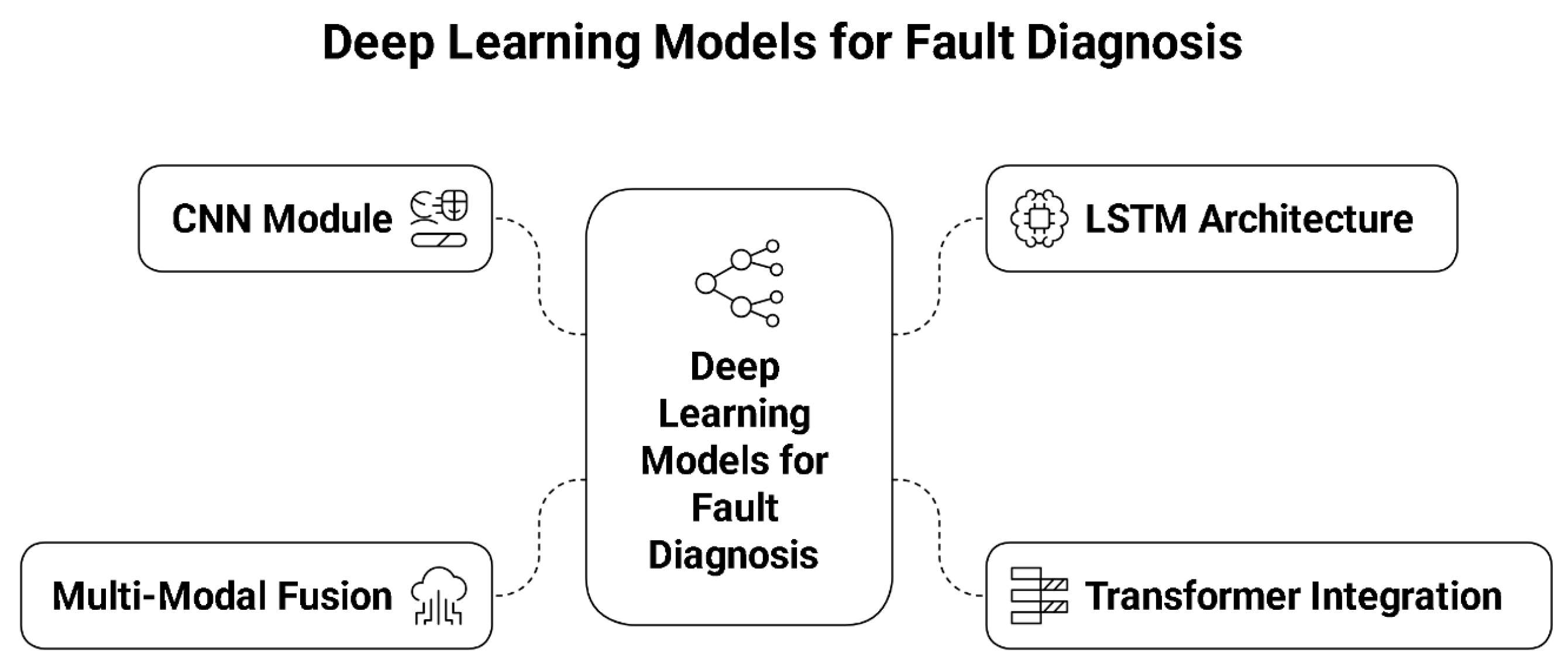 4]. Moreover, deep learning models can effectively integrate multi-modal data generated by these systems, including time-series signals, image data, and frequency-domain features, thereby providing a more comprehensive perspective for fault diagnosis. Through training on extensive historical fault data, deep learning models can not only identify complex fault patterns but also possess considerable predictive capabilities, facilitating the crucial shift from reactive diagnosis to proactive prevention [
