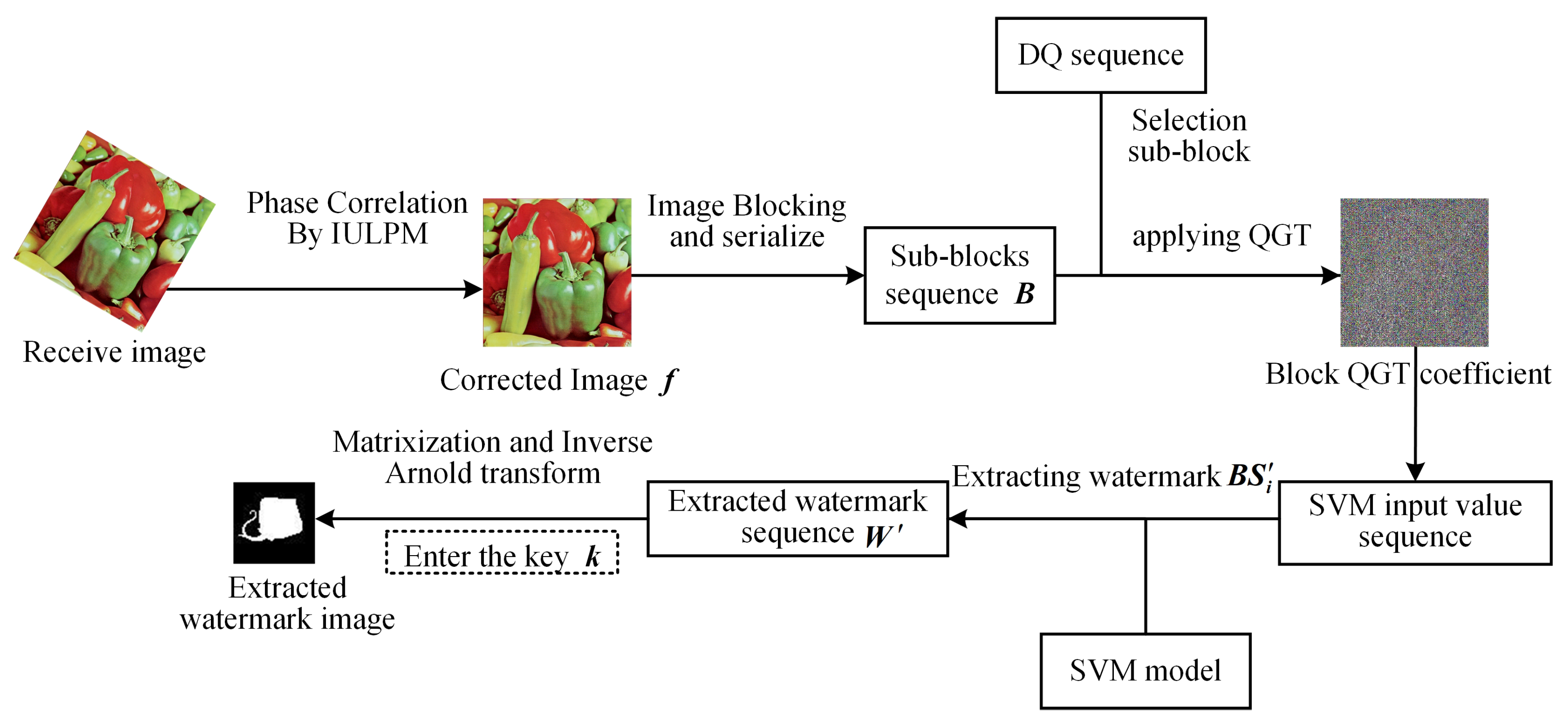 An adaptive embedding strategy prioritizing sub-blocks with higher visual capacity values to optimize imperceptibility, coupled with a support vector machine (SVM)-based extraction mechanism. The SVM models nonlinear relationships between watermark values, spatial positions, and neighborhood coefficients, enabling accurate watermark recovery under adversarial conditions. Experimental validation confirms superior resistance to compression, noise, and geometric distortions compared with conventional spatial-domain and frequency-domain methods.