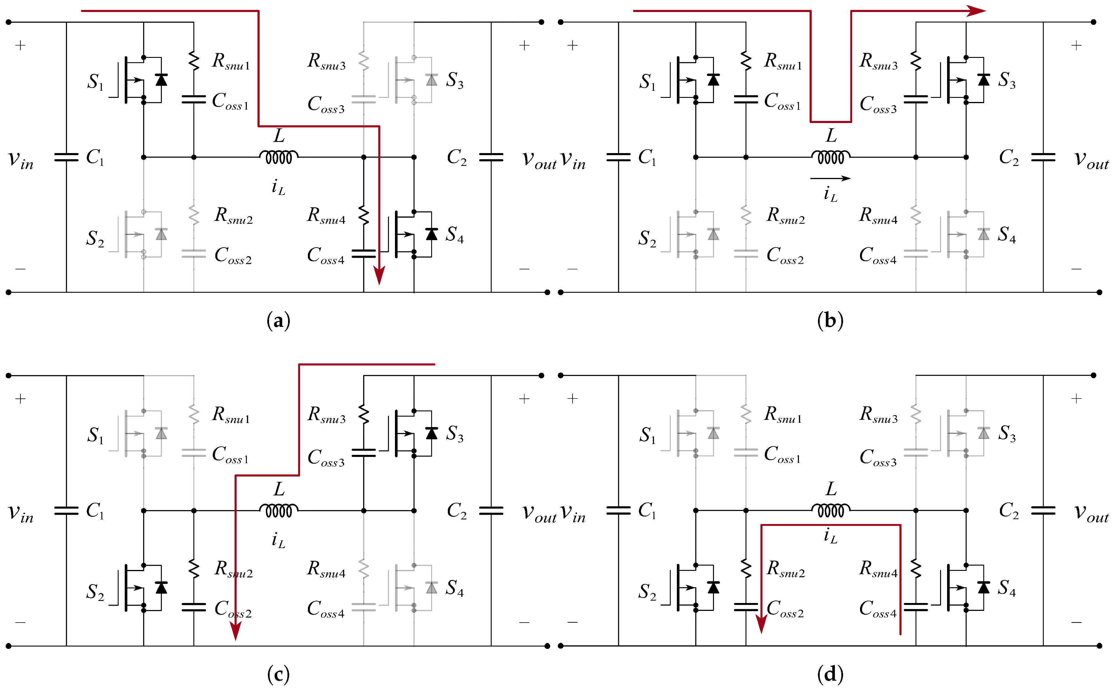 - Yu, J.; Liu, M.; Song, D.; Su, M. A soft-switching control for cascaded buck-boost converters without zero-crossing detection. IEEE Access 2019, 7, 32522–32536. [Google Scholar] [CrossRef]