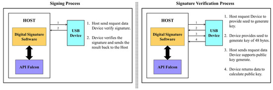 Operational diagram of the software and hardware of the Falcon digital signature device.