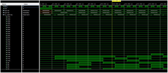 Following this process, the authors proceeded to test the system by running simulation trials using a testbench. The results are presented in Figure 9 and Figure 10, from which it can be observed that for the trng_8bit block—although it generates pseudo-random values—the 255 values it produces are sufficient to meet the design requirements. Meanwhile, for the mq_add block, the summation results (Figure 10) are correct when compared with software-based testing.