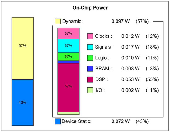 Notably, the design virtually does not use any LUTRAM, indicating that the processing architecture does not rely heavily on temporary logic-based memory. This helps reduce latency and improve overall performance. Moreover, it contributes to mitigating the risk of hardware-based side-channel attacks, where adversaries attempt to exploit buffer memory vulnerabilities. However, it is important to highlight that DSP (Digital Signal Processing block) usage reaches 72.22%—a relatively high value. This suggests that certain components of the Falcon signature scheme integrated into the hardware require a significant amount of complex arithmetic computations.
