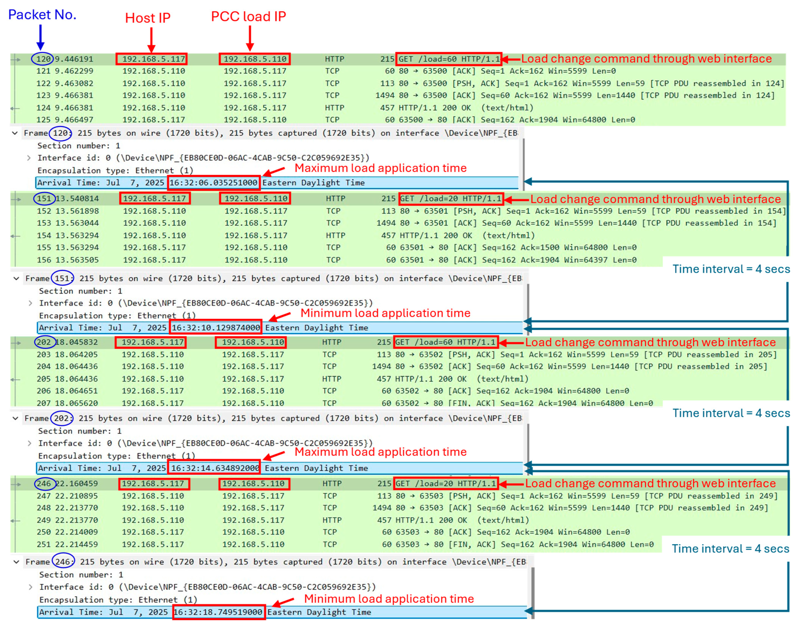 A fourth microcontroller (MCU4) controls the load at the point of common coupling (PCC). Additionally, the system incorporates a host device, enabling remote access and configuration of the MCUs through a user-friendly web interface. Furthermore, a Wireshark network analyzer is integrated into the network, monitoring packet flow, latency, and packet loss between components.