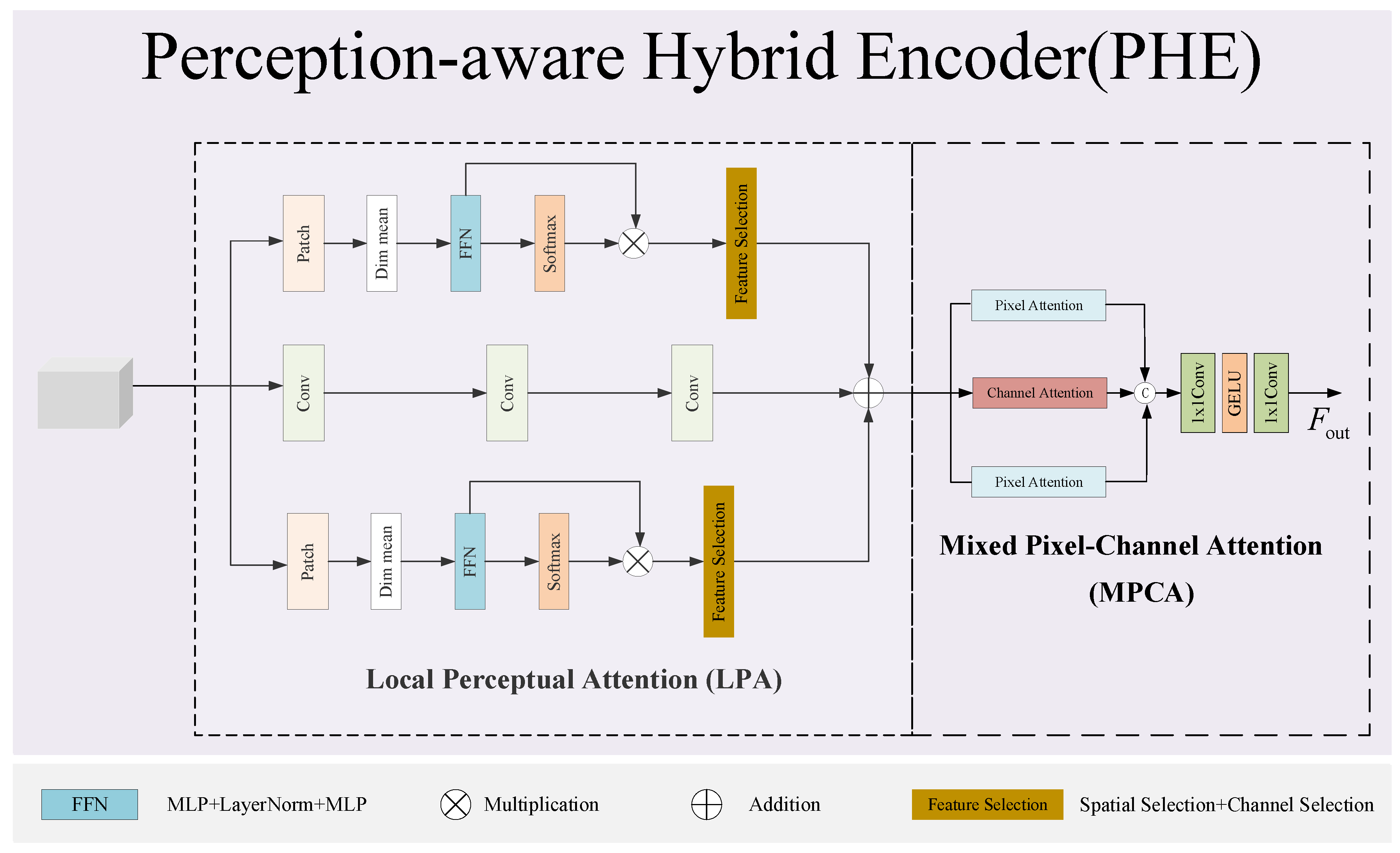 Conventional residual blocks are replaced with a perception-aware hybrid encoder, where local perceptual attention is coupled with mixed pixel–channel attention in multi-branch paths so that fine, low-contrast structures are amplified while global context is injected early to suppress structured distractors.