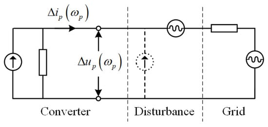 As depicted in Figure 6, there are two types of perturbation signals. One is the current perturbation signal injected in parallel, and the other is the voltage perturbation signal injected in series. Thus, the output impedance of the converter at the frequency can be computed in accordance with the voltage and current . In this paper, the parallel injection method is employed. Firstly, the parallel injection method is more straightforward to implement in engineering applications, as it avoids changing the system’s connection configuration. Secondly, this perturbation injection approach can be integrated into the existing equipment in the system.