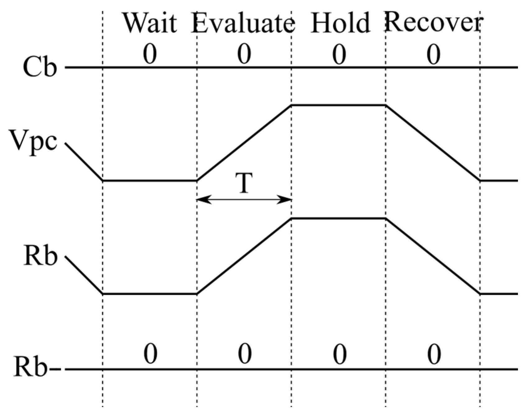 The trapezoidal Vpc consists of four phases: Wait, Evaluate, Hold, and Recover, as illustrated in the timing chart in